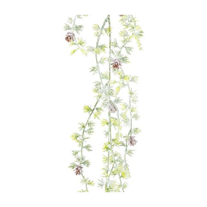 Guirnalda de plantas artificiales de alerce MIBRAN, piñas, verde-blanco, 190 cm