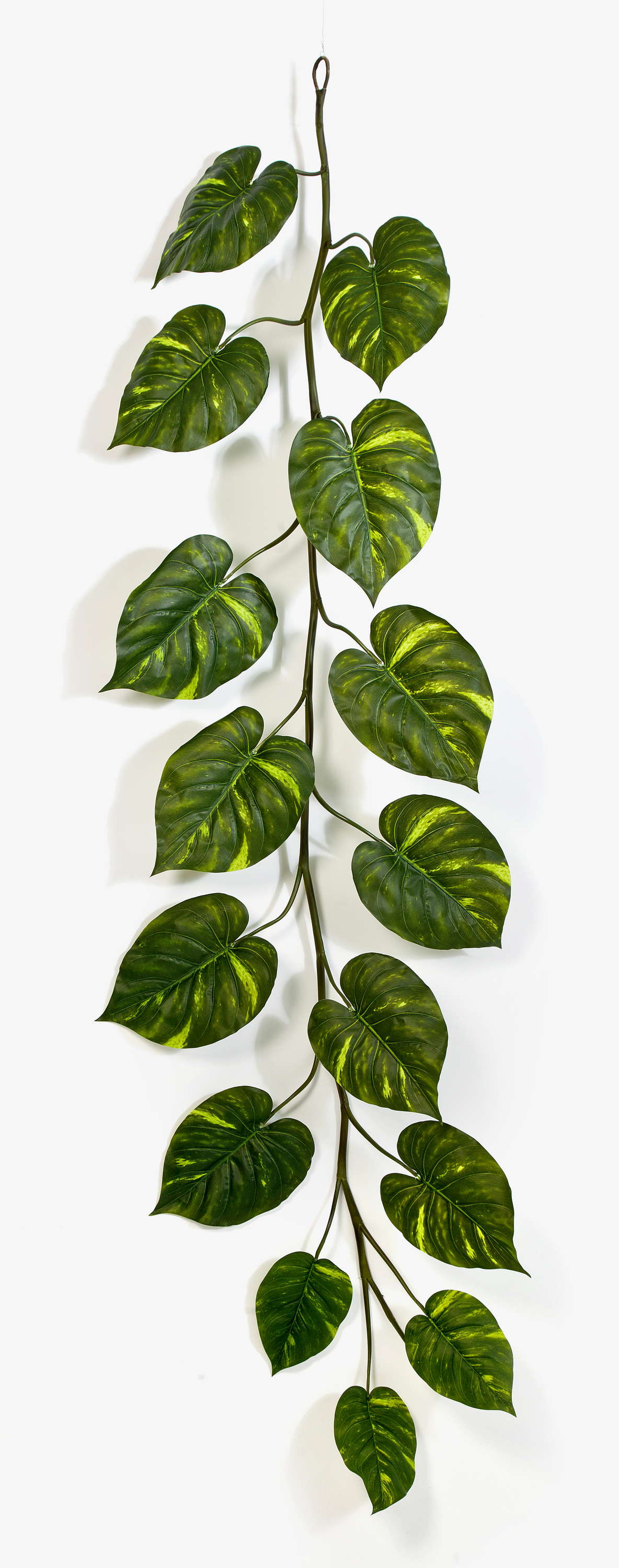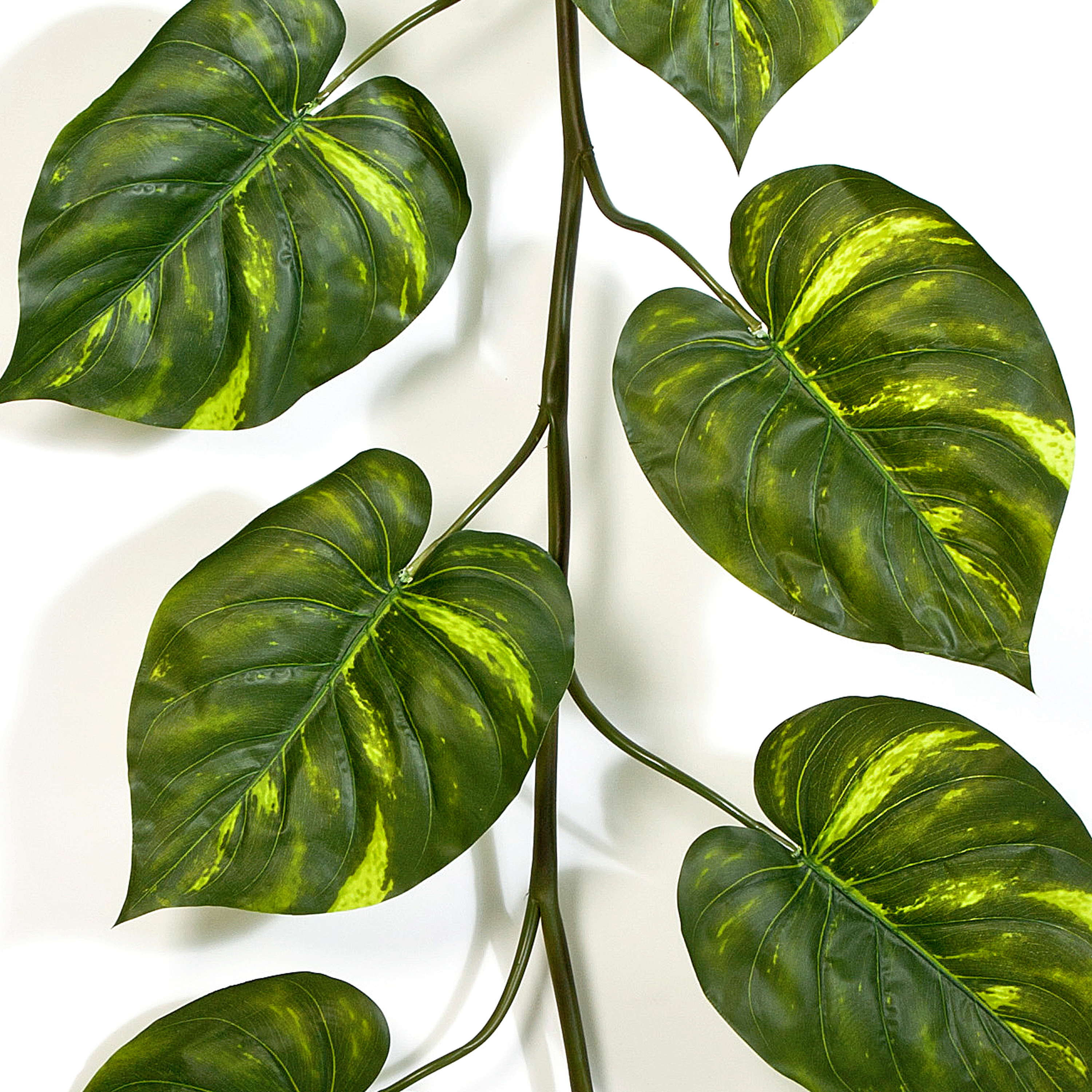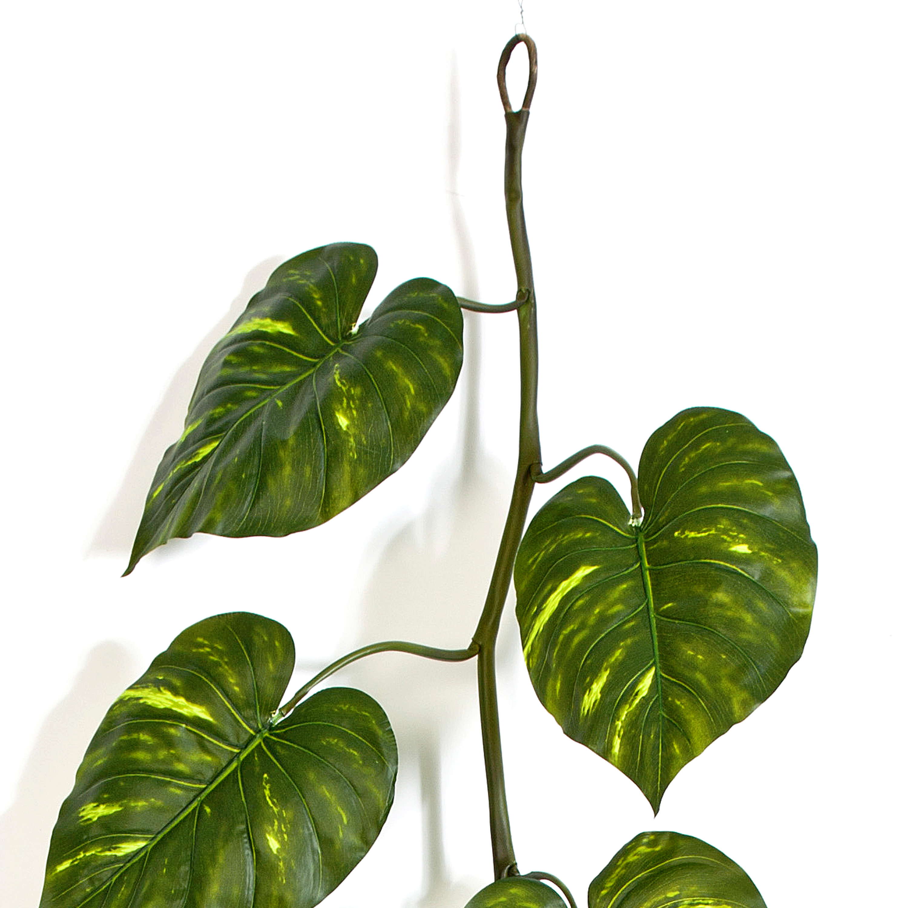 - Con aproximadamente 15 hojas de pothos en forma de corazón, de color verde claro y oscuro decoloradas para una apariencia realista