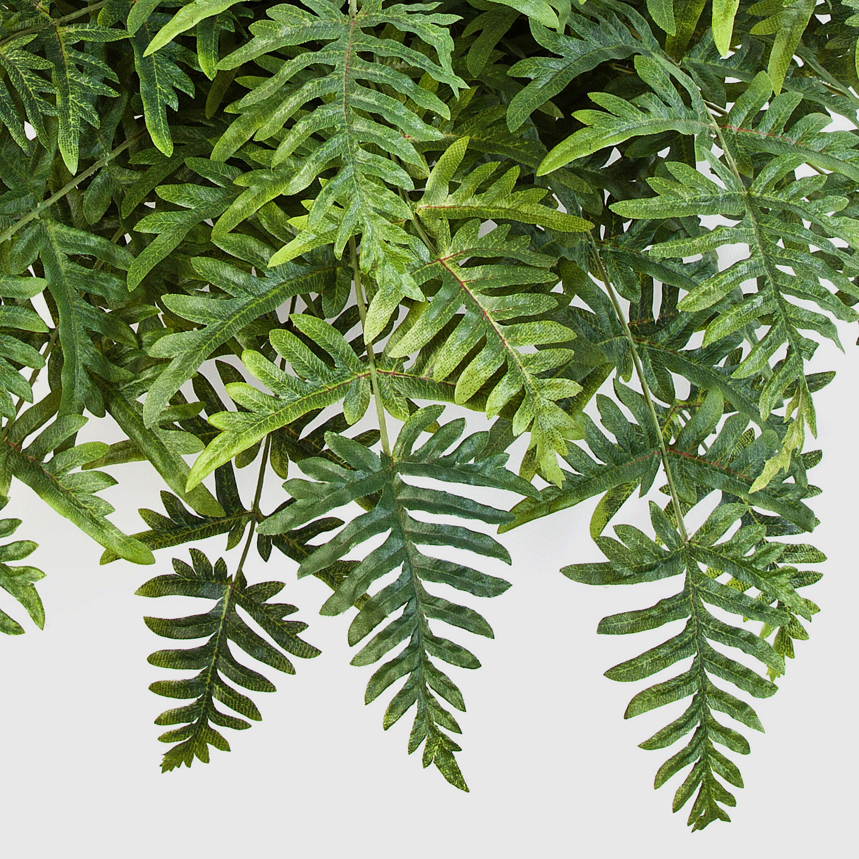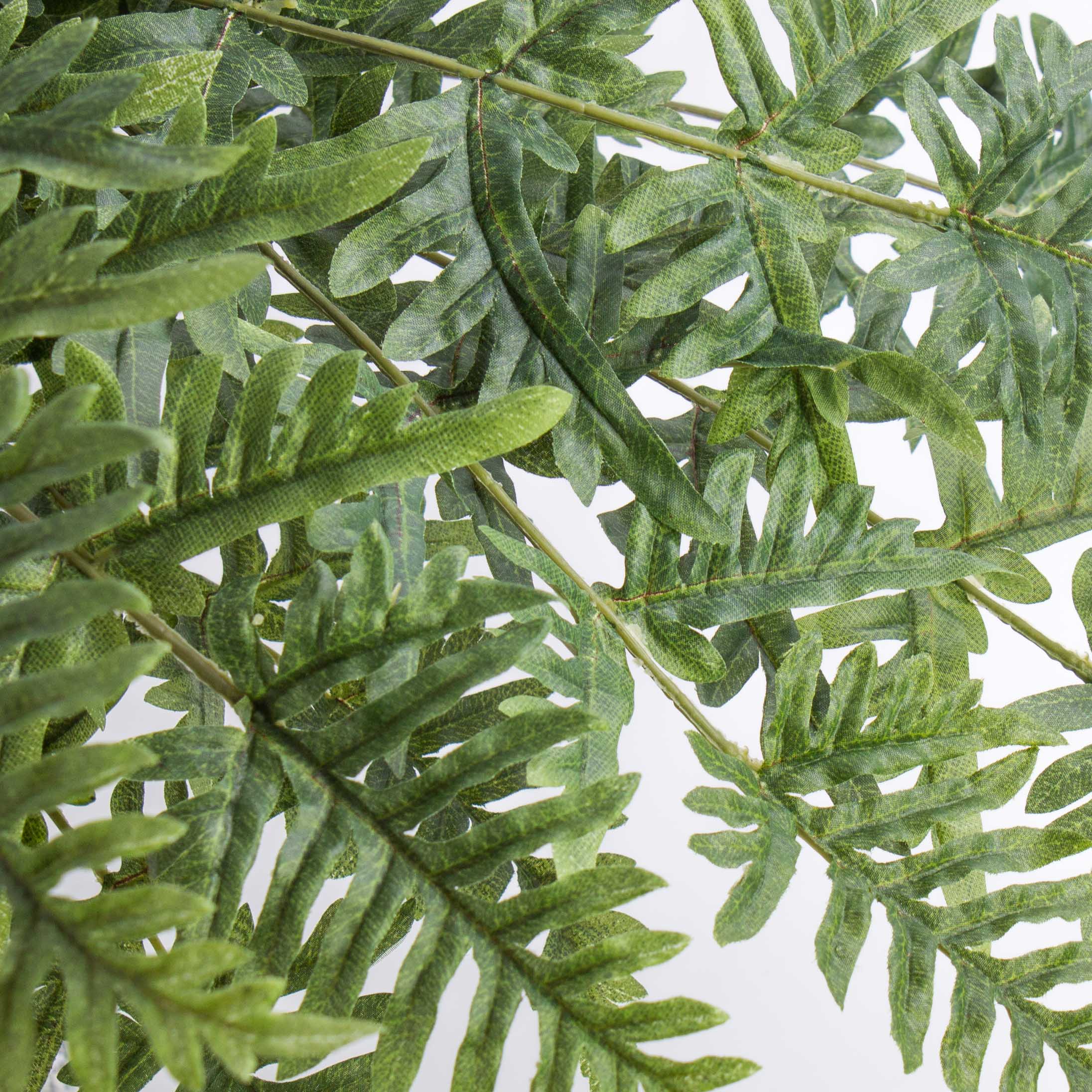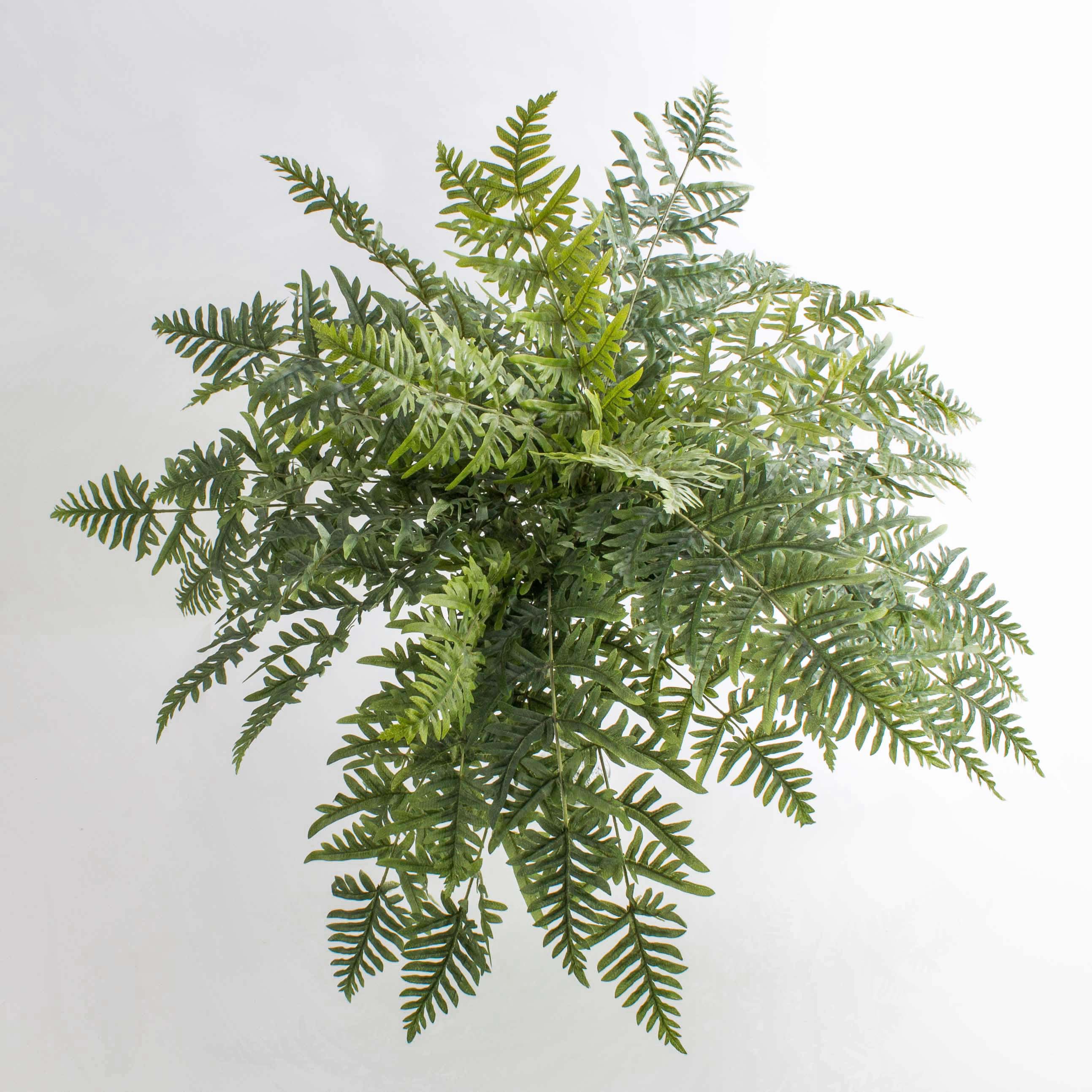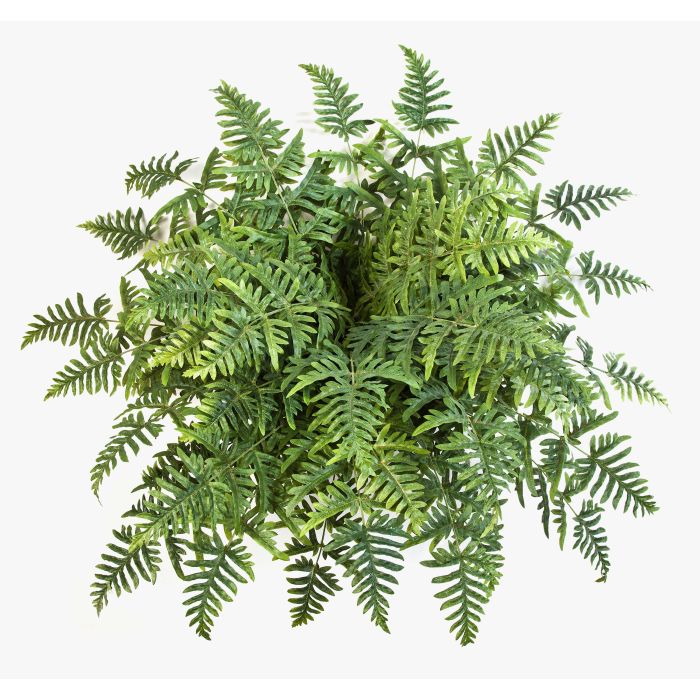Helecho Athyrium artificial con cerca de 45 hojas en color verde. La planta artificial posee una altura aproximada de 75 cm y un diámetro de 90 cm.