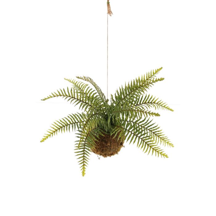 Helecho real artificial ADRATEA sobre bola de musgo, verde, 35cm, Ø50cm