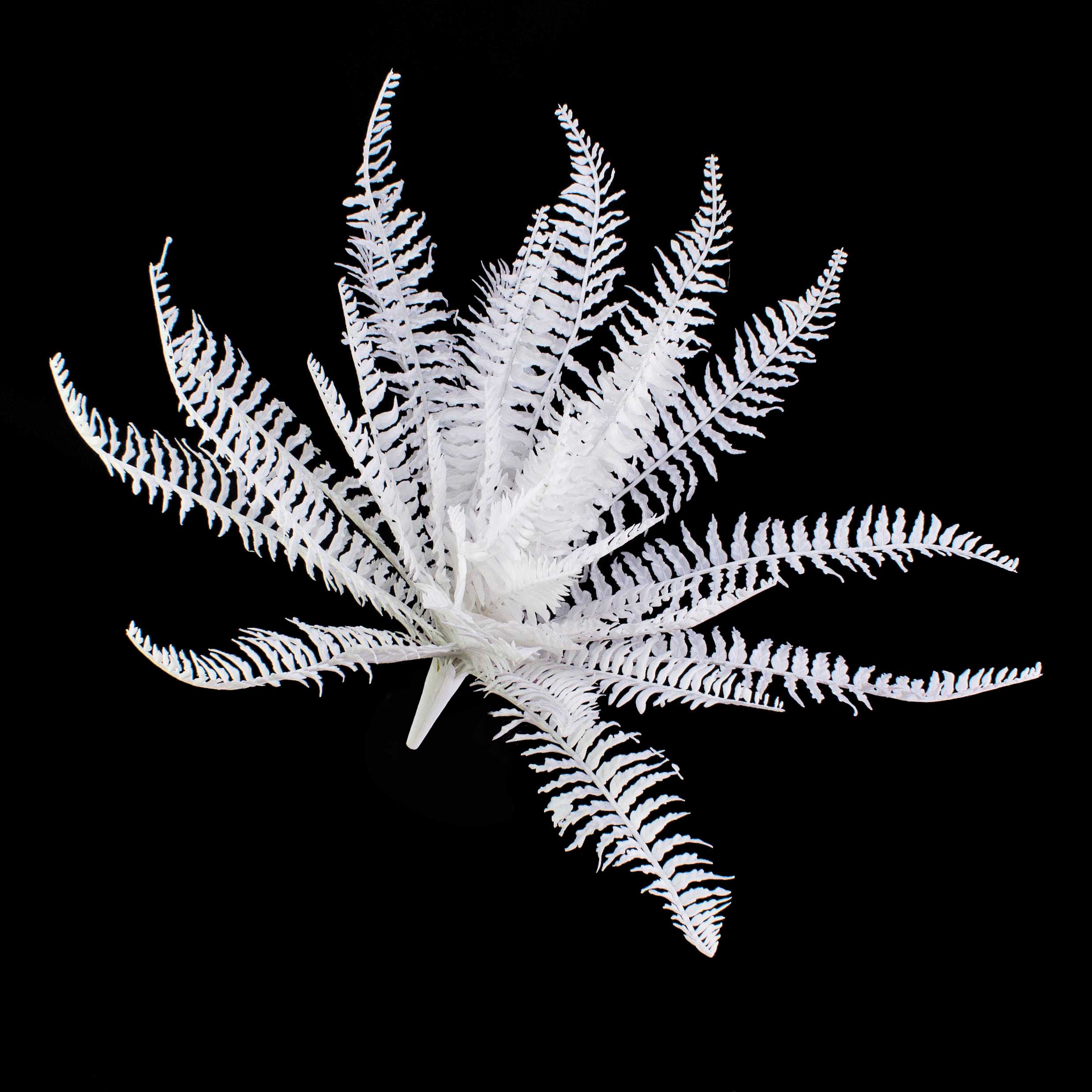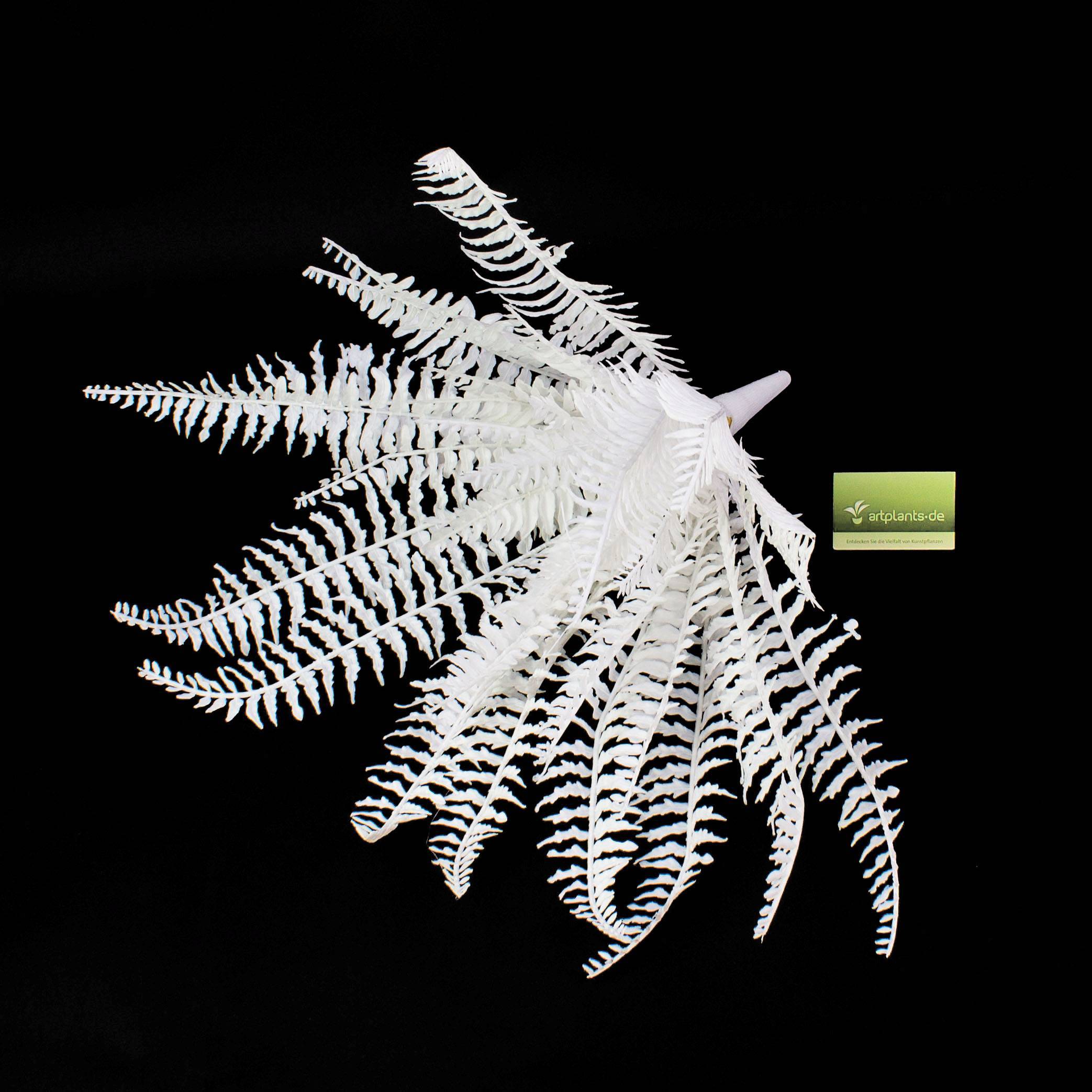 Decorativo helecho artificial con 36 hojas. Helecho artificial en color blanco (sin activos UV) especialmente adecuado para arreglos decorativos.