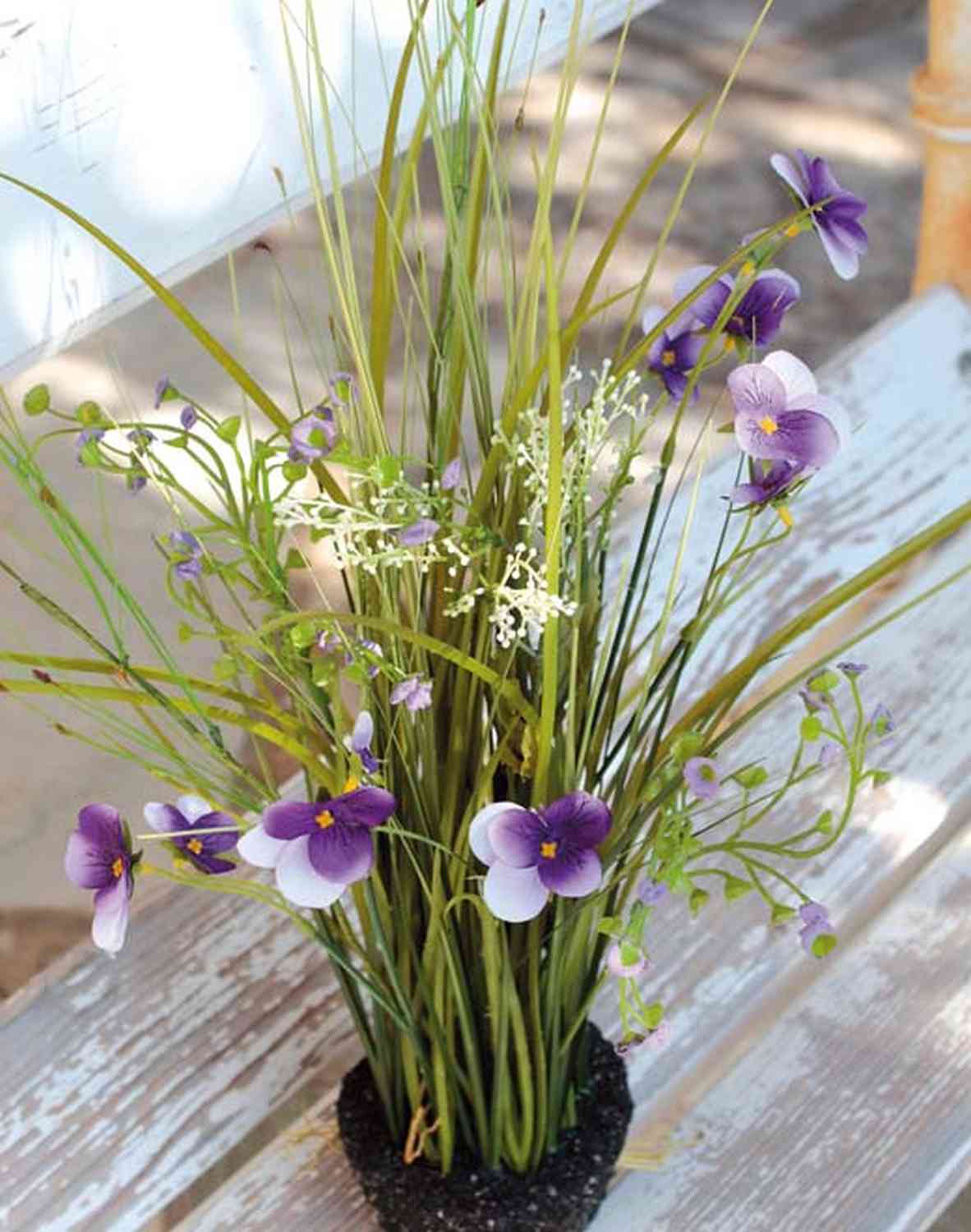 El junco decorativo CEDRIC de color violeta posee una altura de 50 cm. Con la flor de pensamiento como detalle decorativo, la planta artificial es ideal en cualquier decoración de interior.