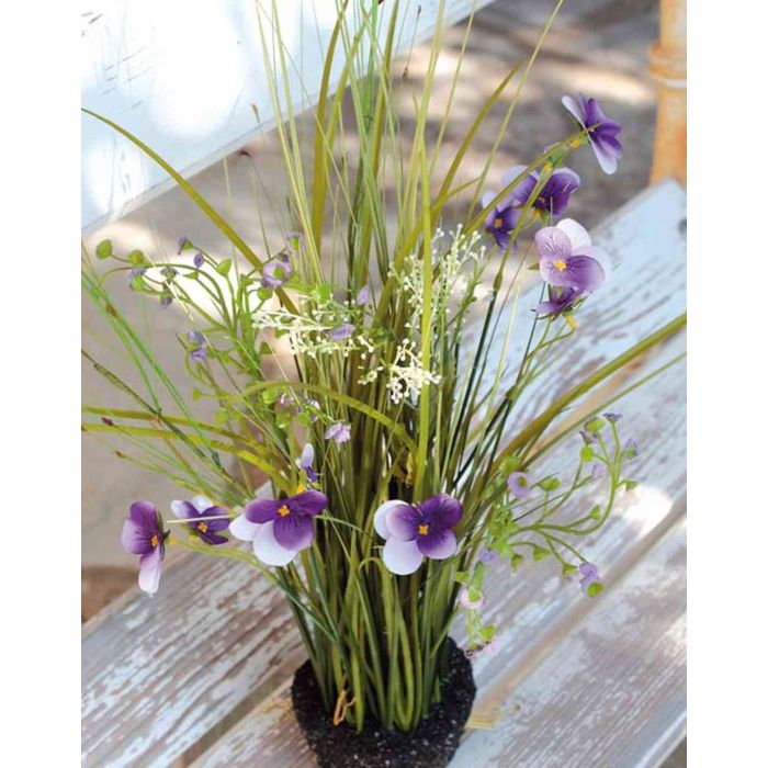 Hierba artificial CEDRIC, pensamientos, bola de tierra, violeta, 50cm