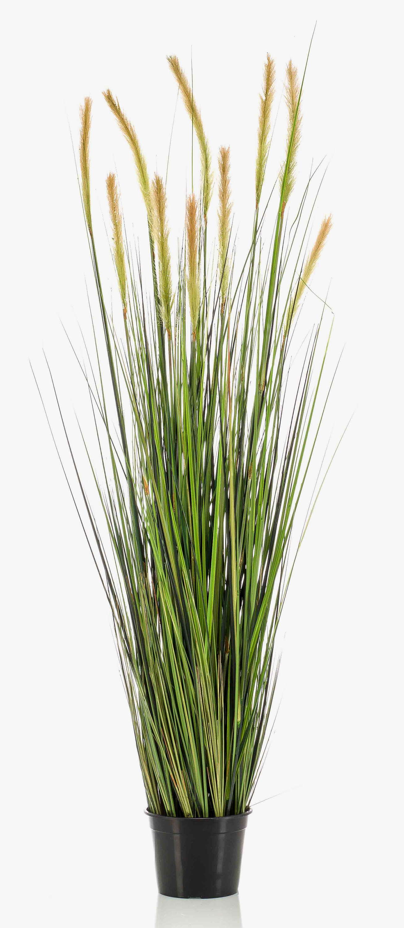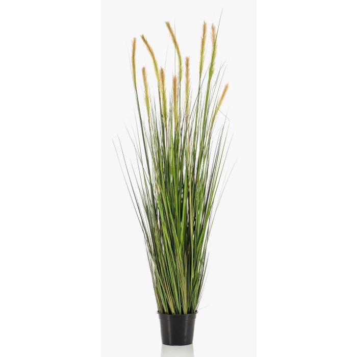 Hierba de cola de zorro de plástico ANNABELLA con una altura de aprox. 150 cm. La hierba se suministra en una maceta de plástico negra (sin la maceta que se muestra en la foto) para facilitar su fijación a la maceta.