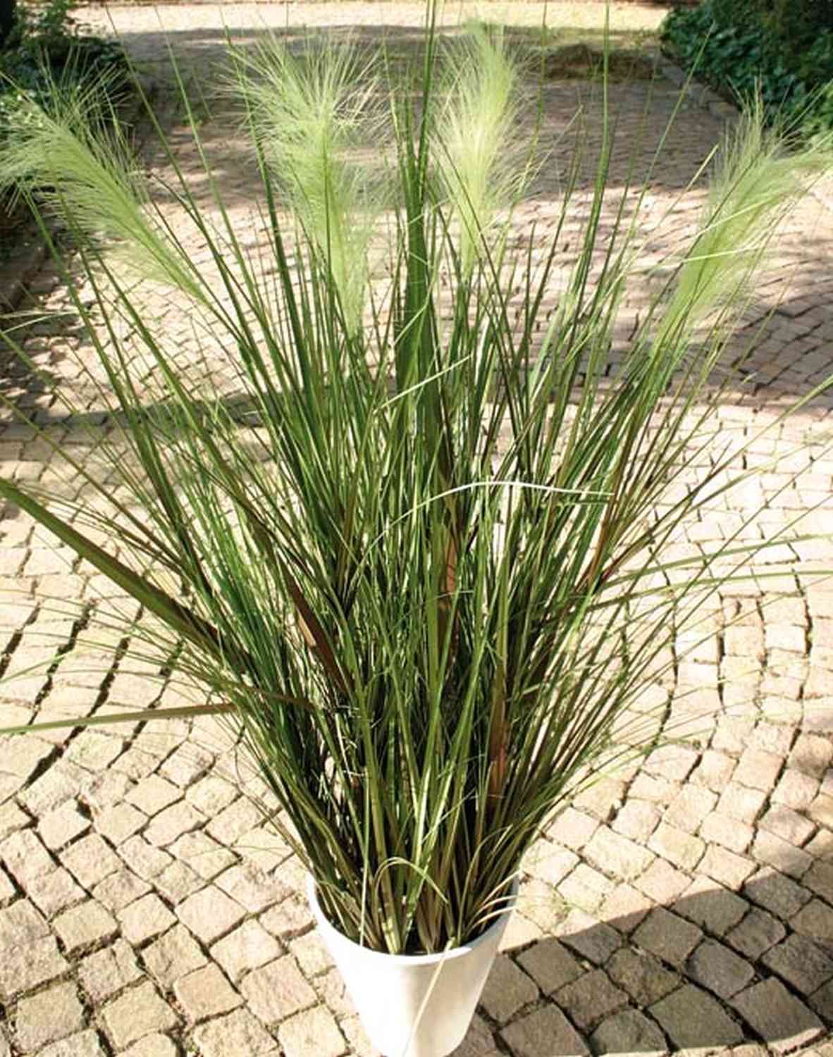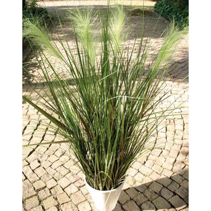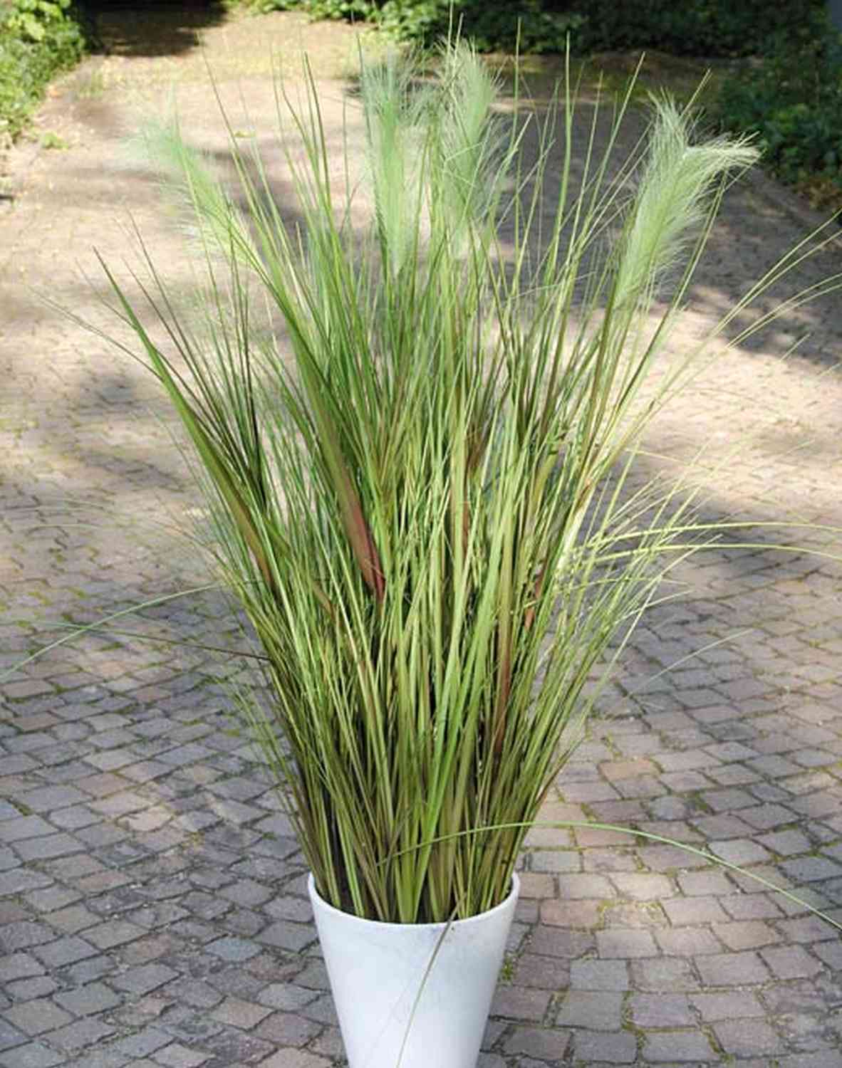 Hierba artificial de stipa PYKE con panículas, en maceta decorativa, verde, 120cm