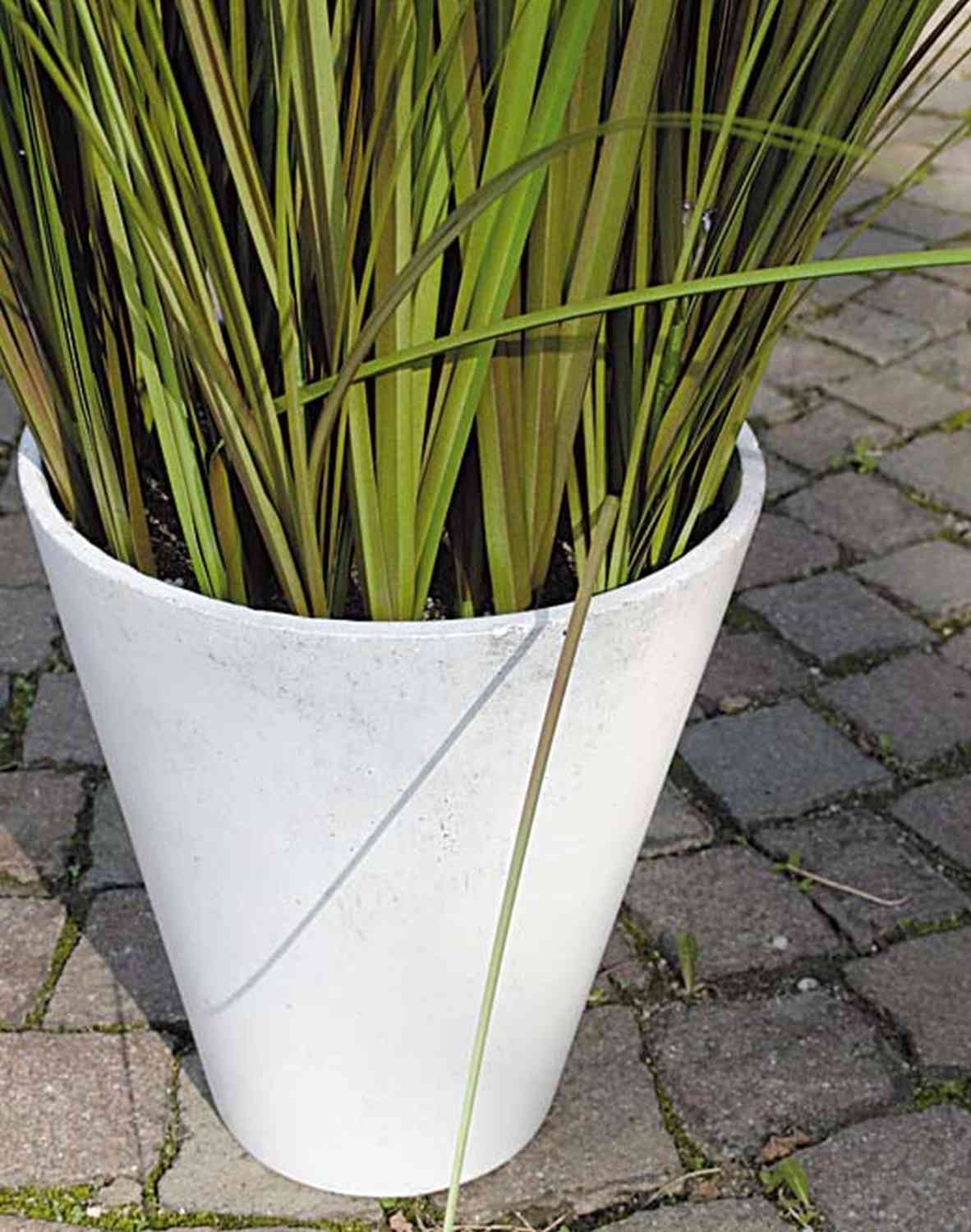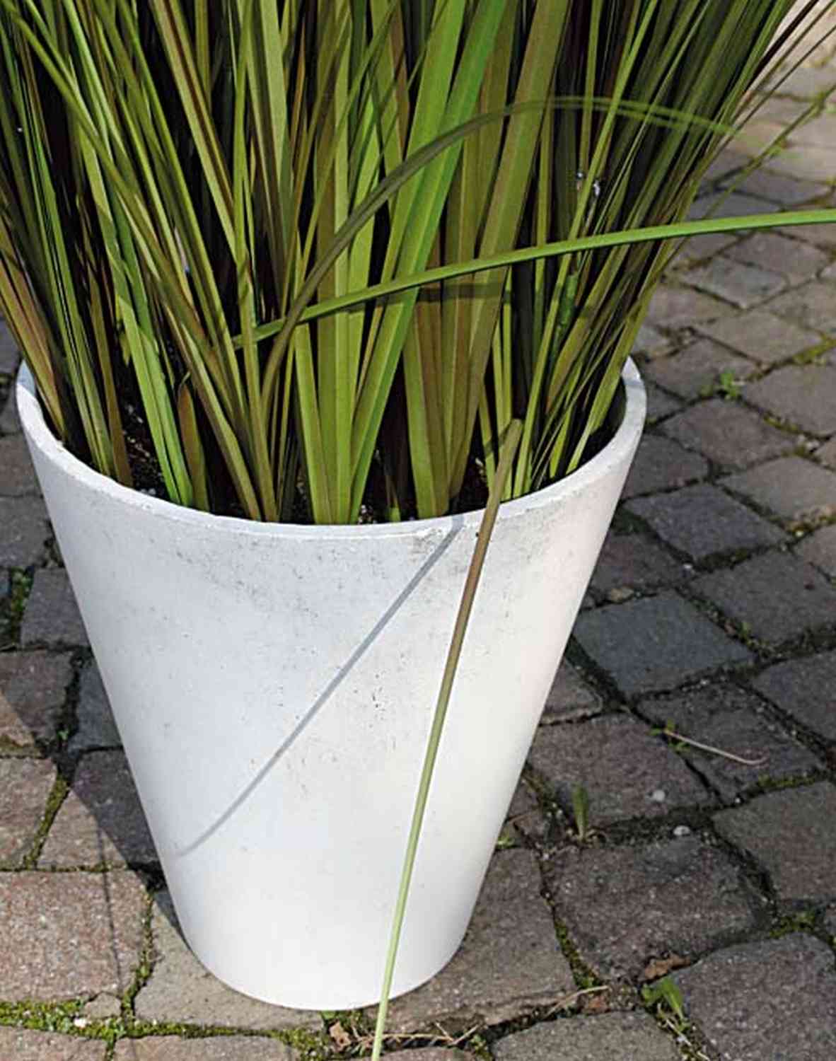 La hierba de plástico PYKE de color verde posee una altura total de 120 cm. La planta sintética crea un ambiente agradable en la habitación y viene en una maceta decorativa.
