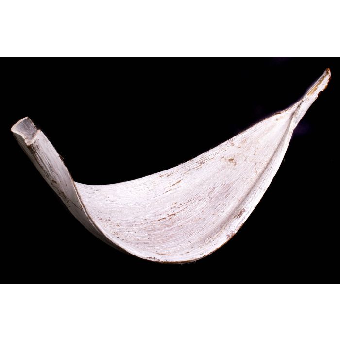 Hoja seca de galara con unas dimensiones aproximadas de 30 – 80 cm. Curvada hoja con superfície tratada que se mantiene por si sola en la forma mostrada en la foto. Debido a que se trata de un articulo único, cada hoja posee una única forma y color.