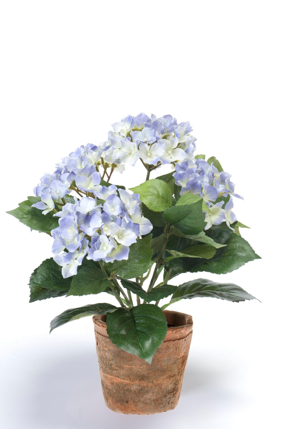 Hortensia artificial LAIDA en maceta de terracota, azul claro, 35cm
