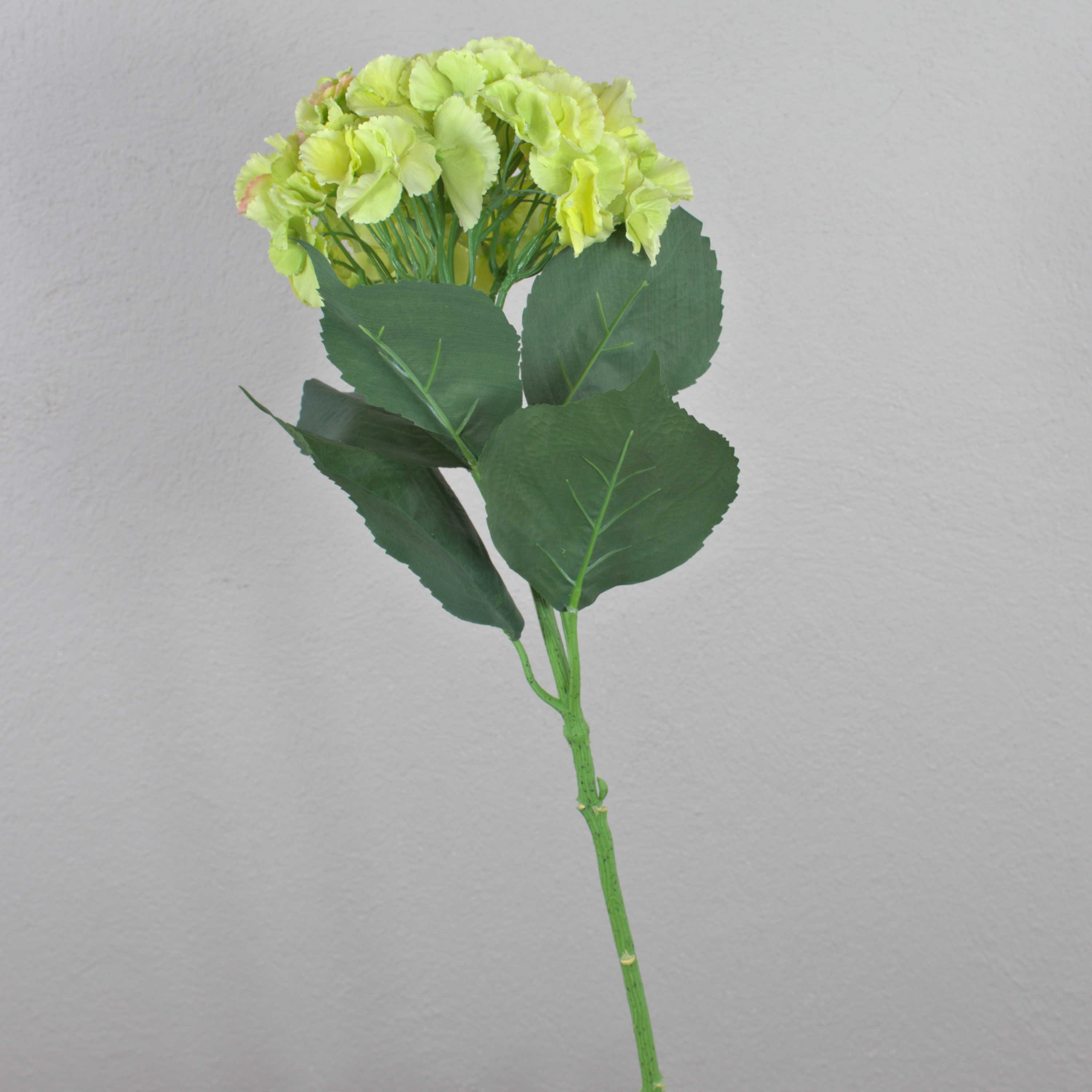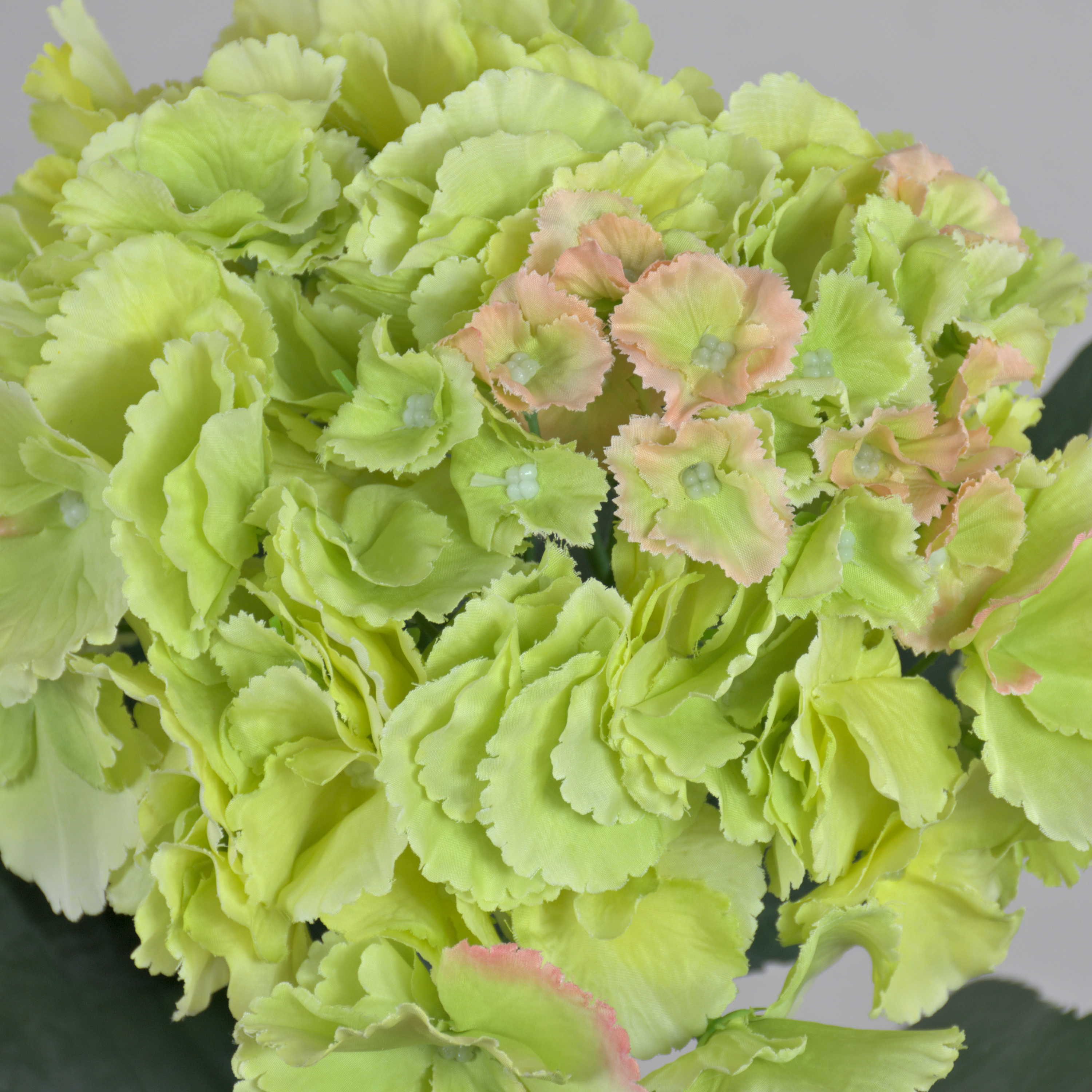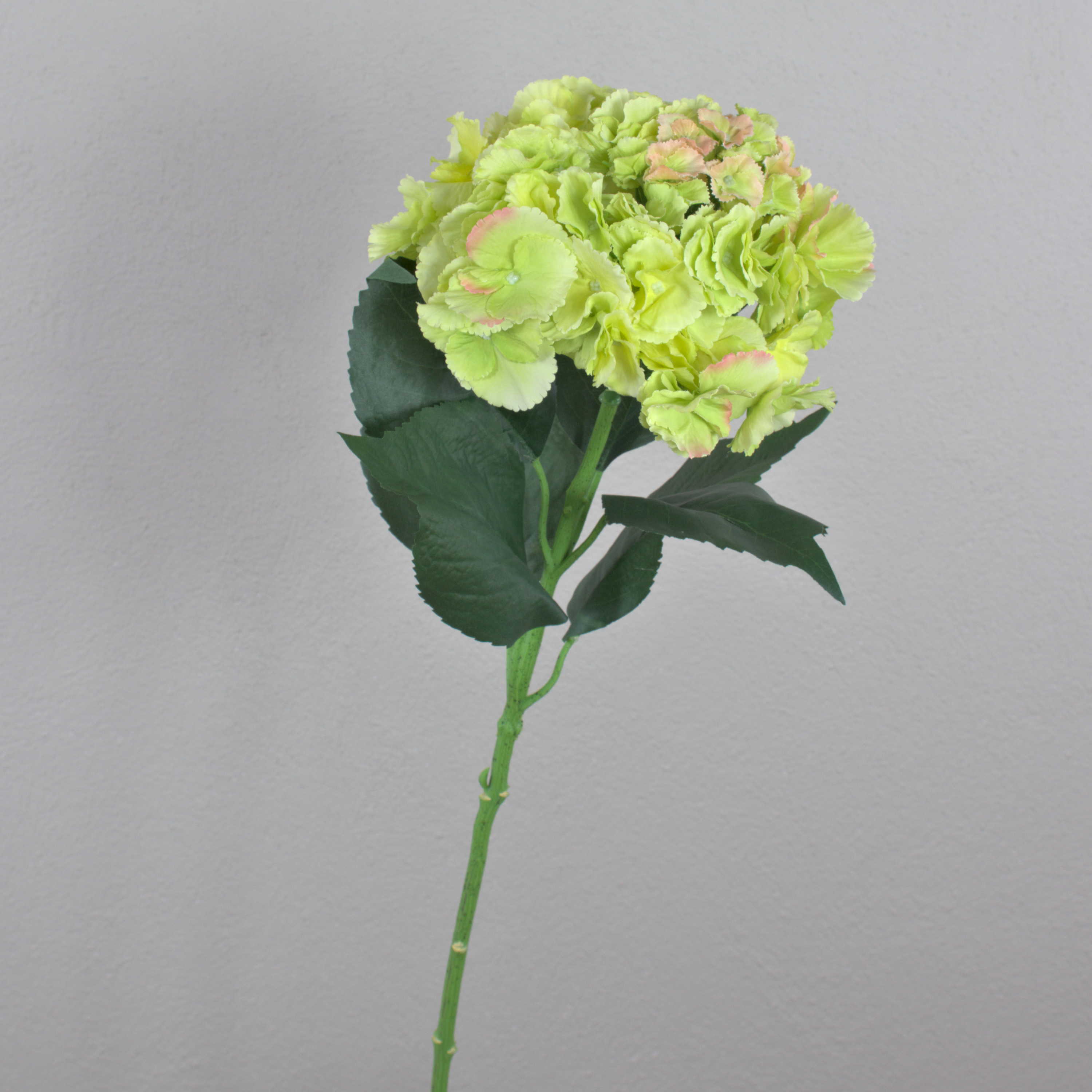 La hortensia (Hydrangea) artificial de color crema y verde mide unos 70 cm de largo. Sola, o bien en ramo, la flor decorativa se ve bonita.