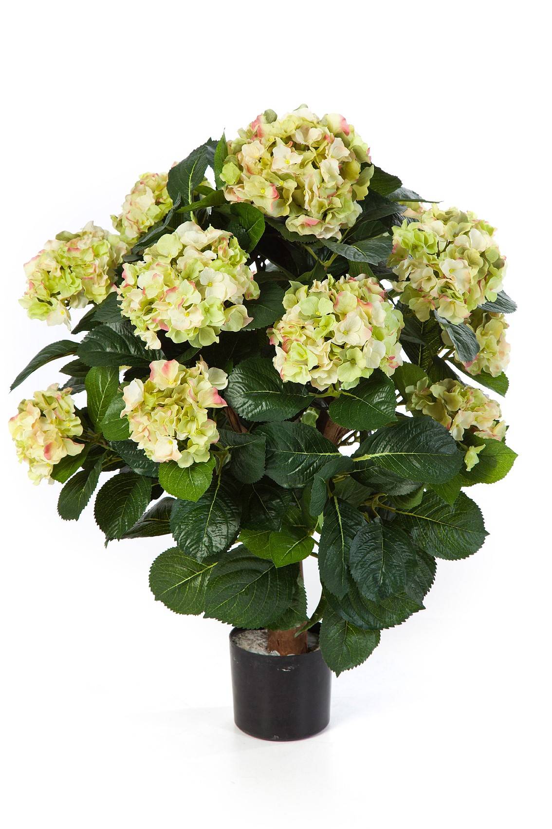 Hortensia artificial HARUKA (Hydrangea) que llama la atención por sus vistosos colores. La planta artificial posee una apariencia natural gracias a una elaboración de sus hojas y umbelas con todo lujo de detalles.