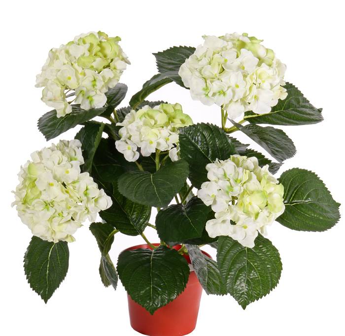 - Hortensia falsa ideal como decoración en el alféizar interior de la ventana, estantería de flores, en un aparador y más