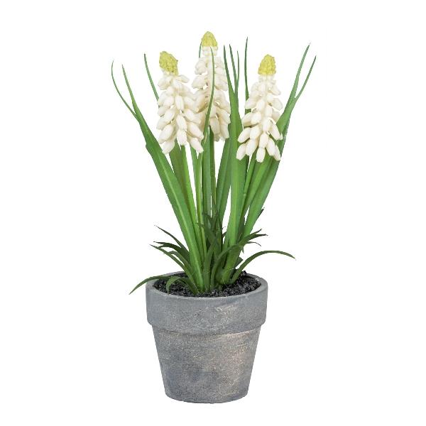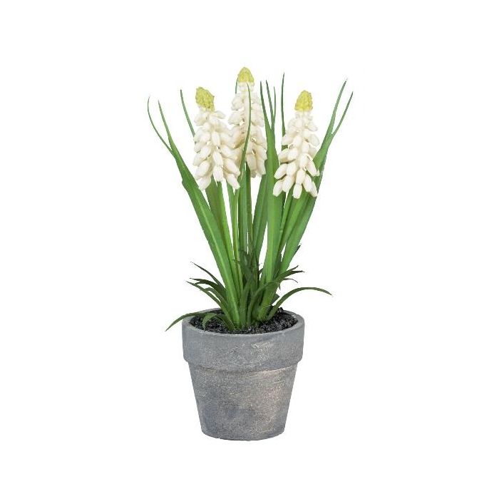 Jacinto de uva artificial ZORKLEM en maceta decorativa, blanca, 18 cm