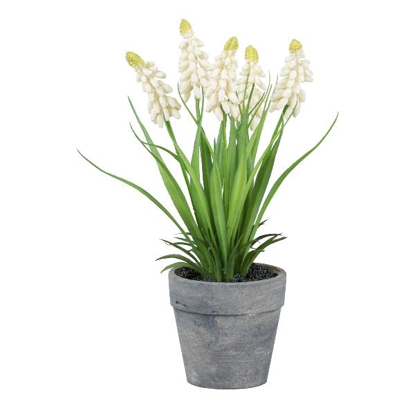 Jacinto de uva artificial ZORKLEM, en maceta decorativa, blanca, 22 cm