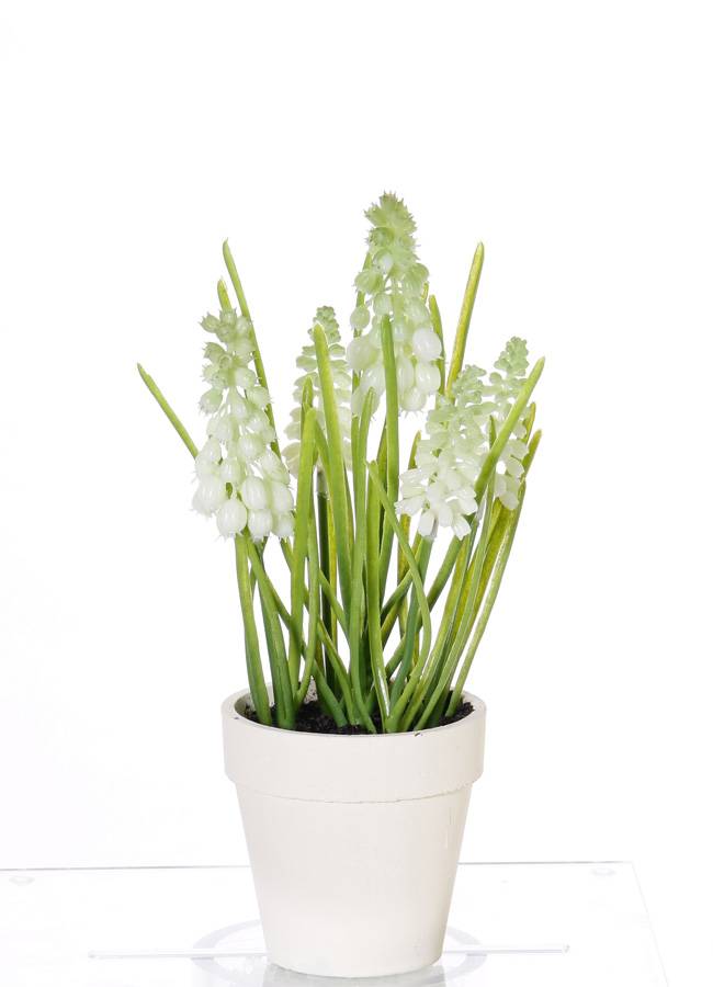 Jacinto sintético ARABELLA en maceta decorativa, crema, 25cm, Ø2-3cm