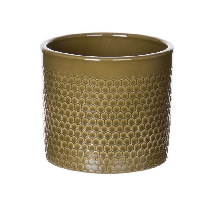 Jardinera de cerámica CINZIA, diseño de puntos, caqui, 12,3cm, Ø13,5cm