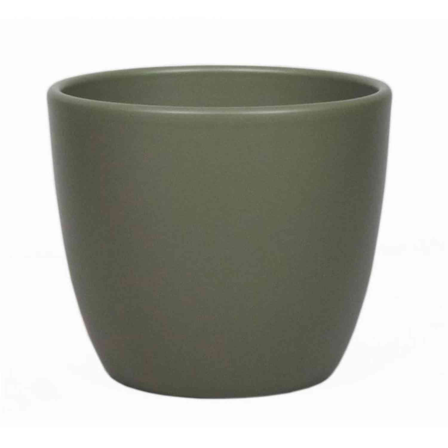 Jardinera de cerámica grande TEHERAN BASAR, verde oliva mate, 25cm, Ø28cm