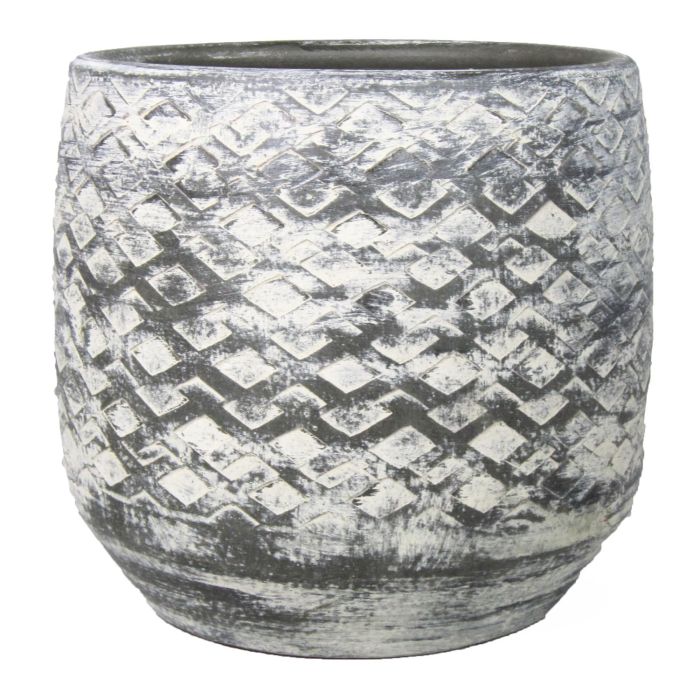 Jardinera de cerámica MAIVIN, motivo de rombos, gris, 14cm, Ø15,5cm