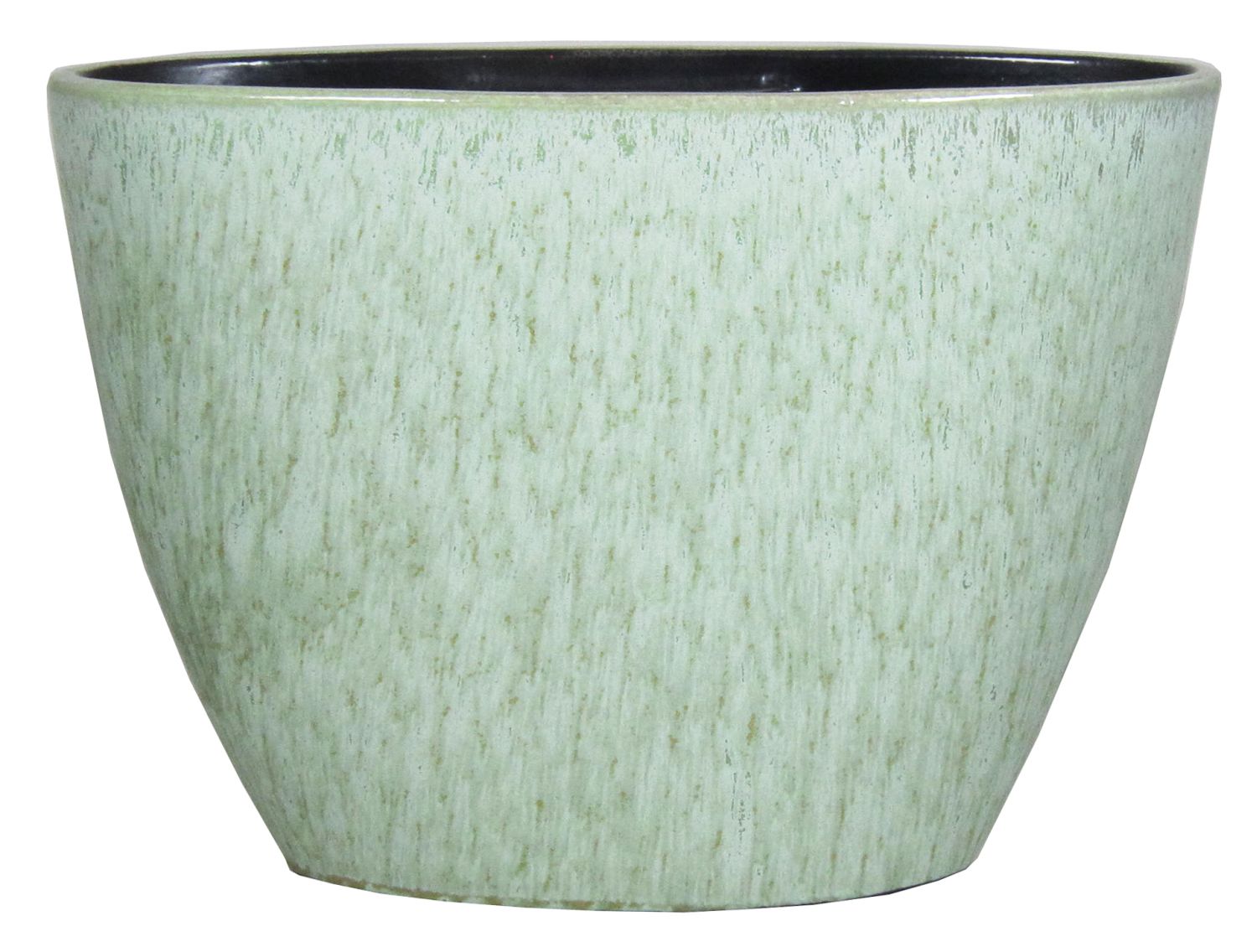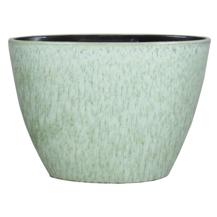 Jardinera de cerámica ovalada ELIEL, moteada, verde menta-blanco, 32x15x22cm