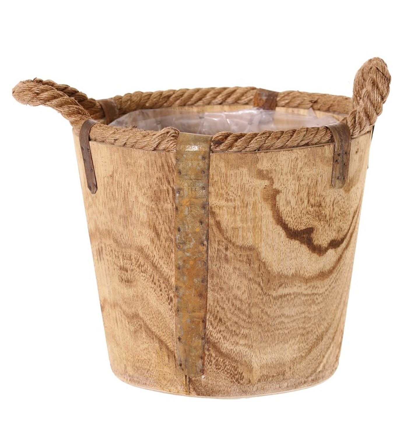 Jardinera de madera DABIH con asas de cuerda, marrón, 22cm, Ø24cm