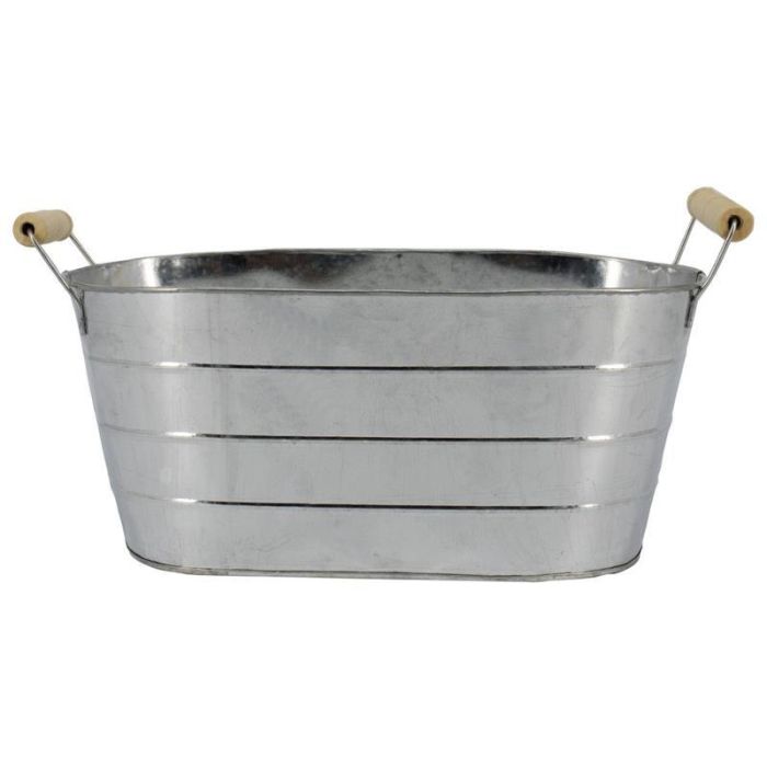 Jardinera ovalada JULISA con asa, zinc, plateada, 21 x 12,5 x 9,5 cm