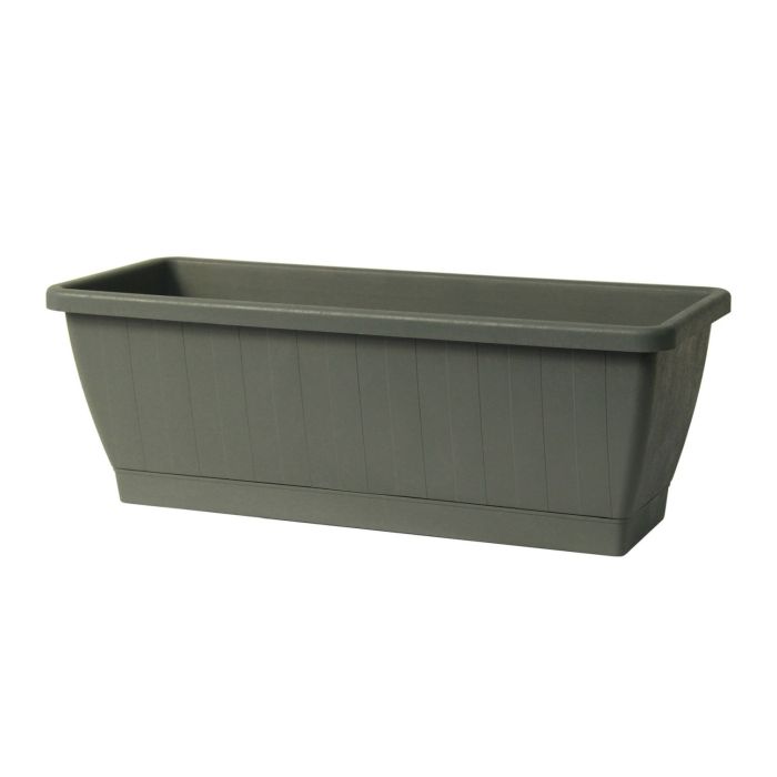 Jardinera para balcón OPHIRA de plástico reciclado, depósito de agua, base, verde salvia, 49,5 x 19,5 x 17,5 cm