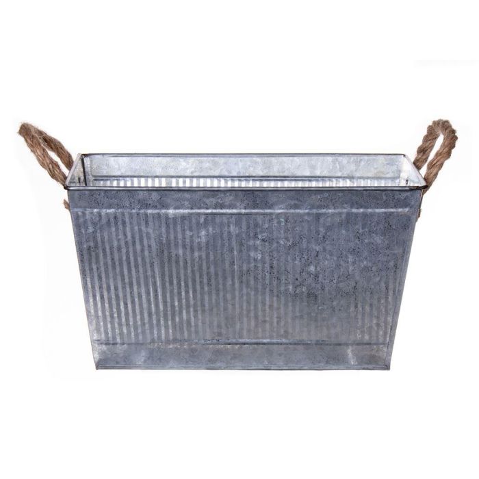 Jardinera rectangular BIMETO con asas, ranuras, zinc, plateada, 24 x 14 x 13 cm