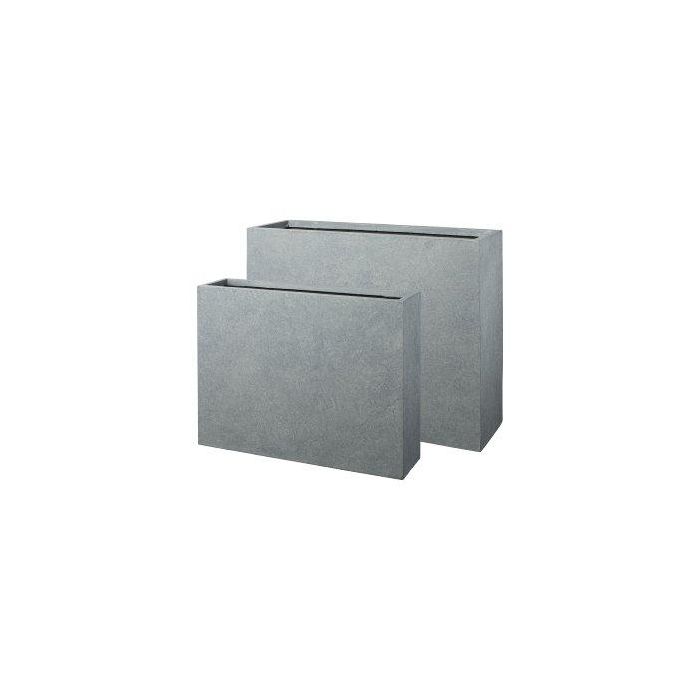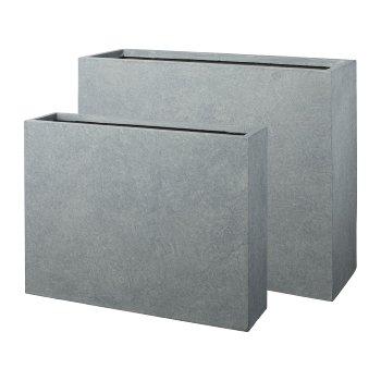 Jardinera rectangular KIRIMA, 2 unidades, fibra de vidrio, gris, 75 x 19 x 59 cm, 85 x 27 x 70 cm