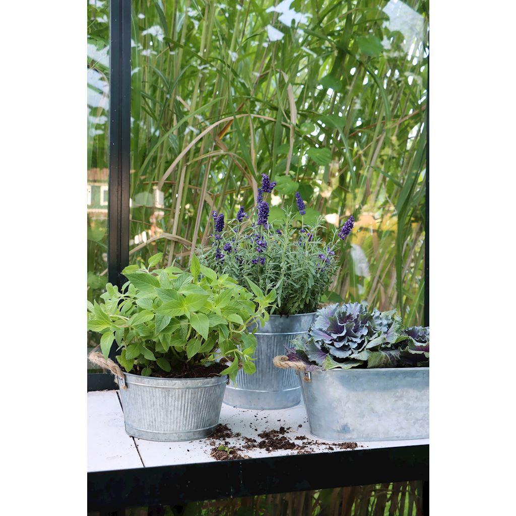 Jardinera redonda BIMETO con asas, ranuras, zinc, plateado, 11,5 cm, Ø 23 cm