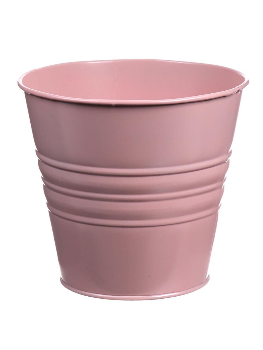 Jardinera redonda MICOLATO con ranuras, zinc, rosa, 12cm, Ø13,5cm