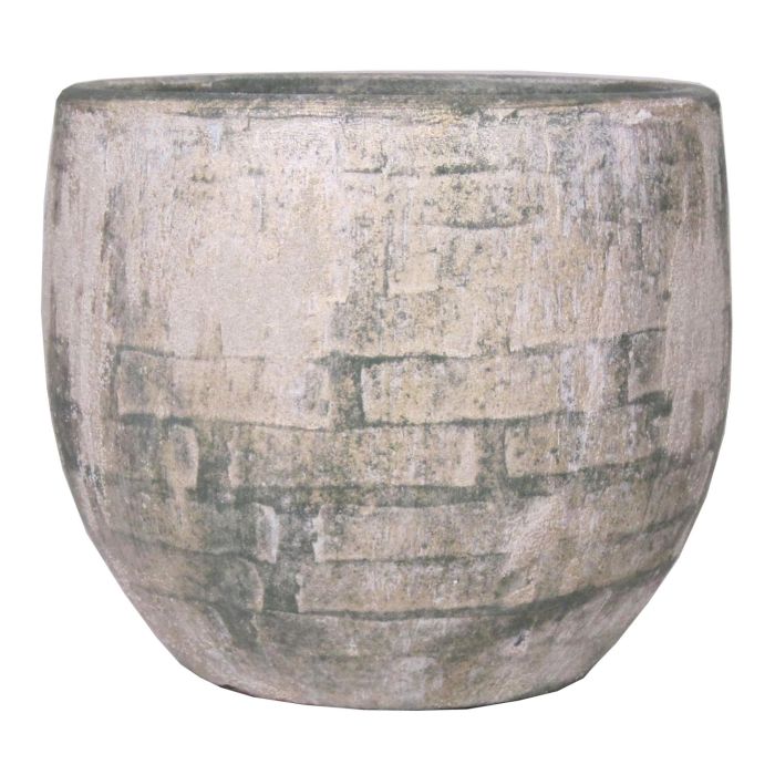 Jardinera retro AGGELOS, cerámica, apariencia de pared, verde-crema, 27cm, Ø29cm