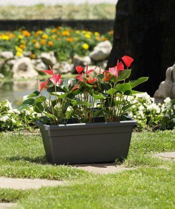 Jardinera TOULA de plástico, con agujeros, antracita, 99 x 45 x 40 cm
