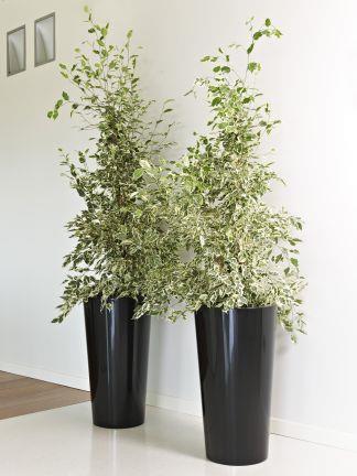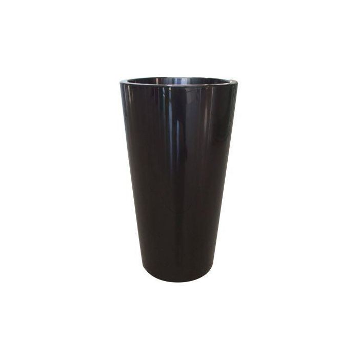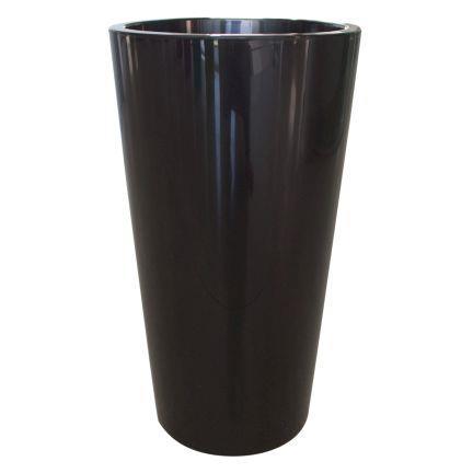 Jarrón alto redondo para plantas THERESITA de plástico, con inserto, kit de riego, negro, 75 cm, Ø 40 cm