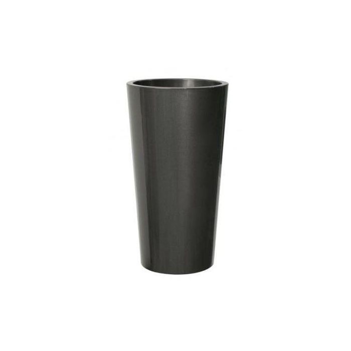 Jarrón alto redondo THERESITA de plástico, con inserto, kit de riego, color antracita, 75 cm, Ø 40 cm