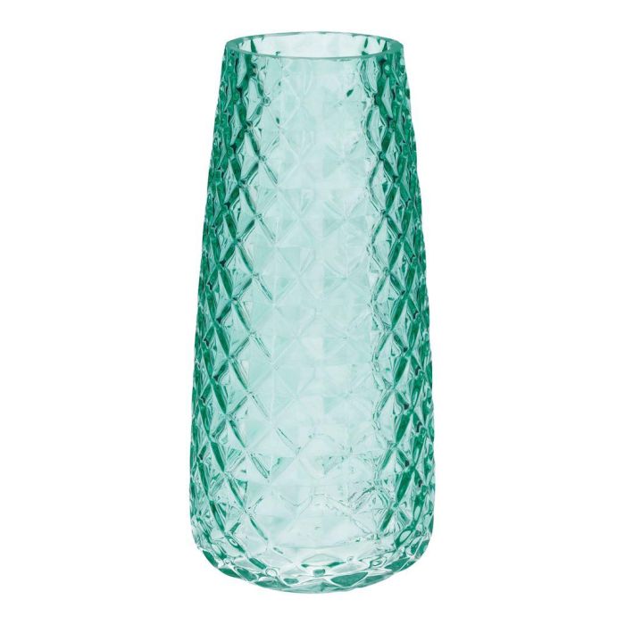 Jarrón AMALFRIED con diseño de rombos, vidrio, turquesa, 21 cm, Ø 10 cm