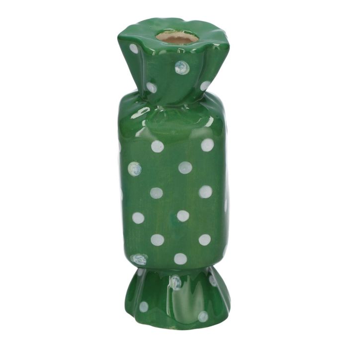 Jarrón angular para flores Bonbon AMIEL de cerámica, con puntos, verde y blanco, 4,5 x 4,5 x 11,5 cm