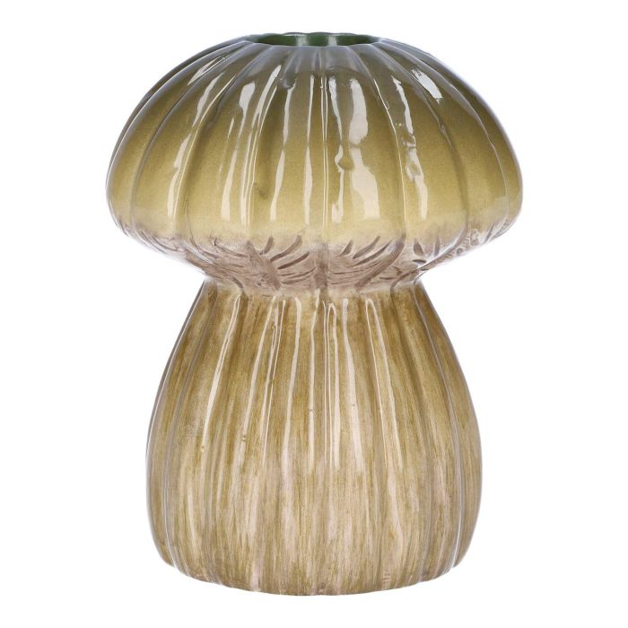 Jarrón de cerámica REFELINDE, forma de seta, ranuras, verde-beige, 12cm, Ø9,5cm