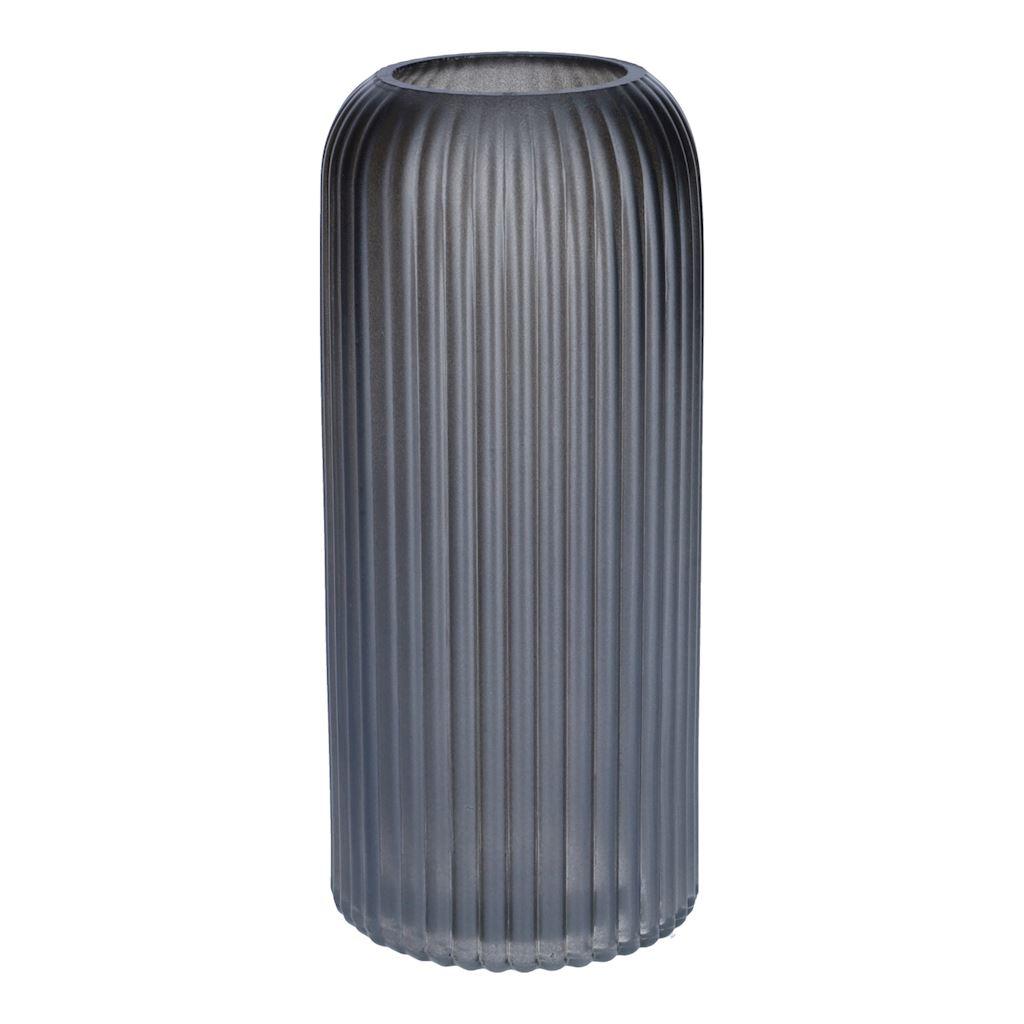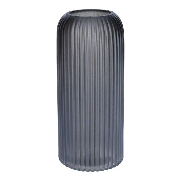 Jarrón de cristal ALBURGIS con ranuras, gris metalizado, 20 cm, Ø 8,7 cm