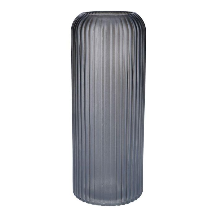 Jarrón de vidrio ALBURGIS con estrías, gris metalizado, 25 cm, Ø 10 cm