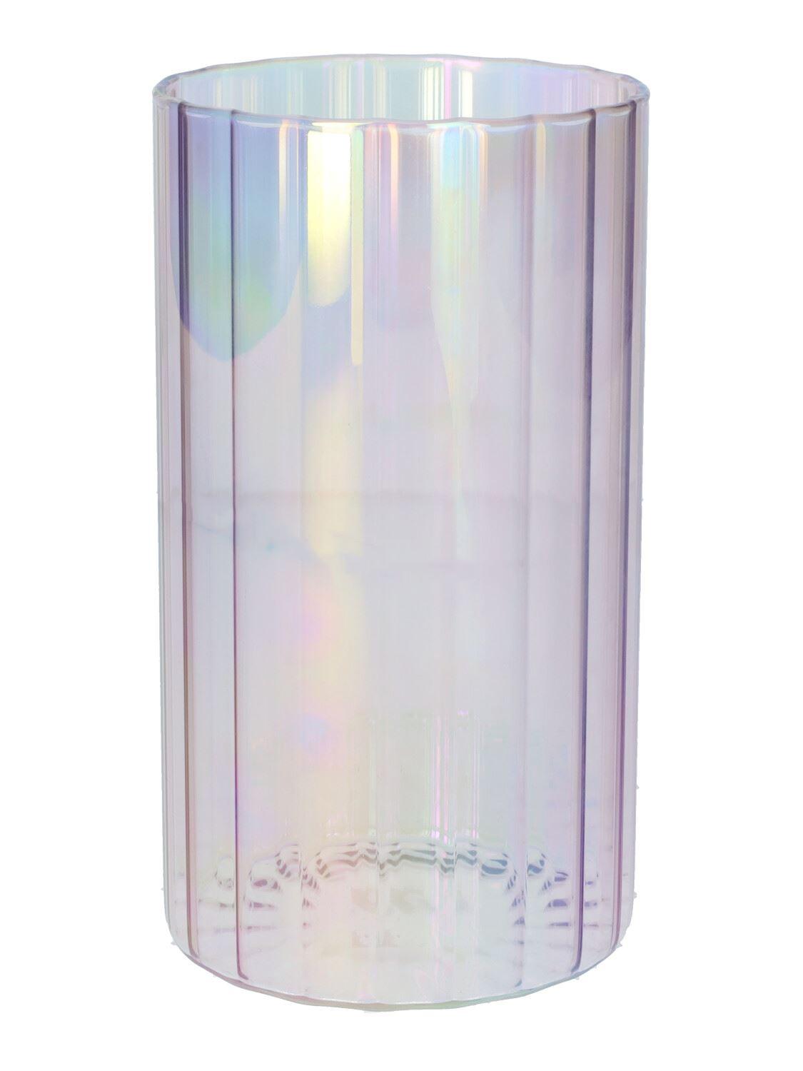 Jarrón decorativo BLANDINA, vidrio, estrías, violeta iridiscente transparente, 18 cm, Ø 10 cm