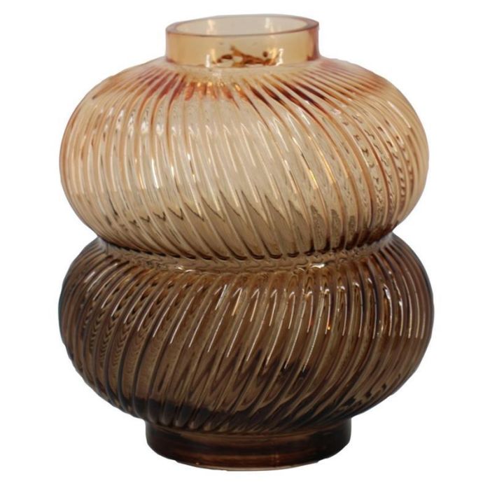 Jarrón decorativo de cristal KORNELIA con estrías, ámbar-marrón-transparente, 16,3 cm, Ø 14,7 cm