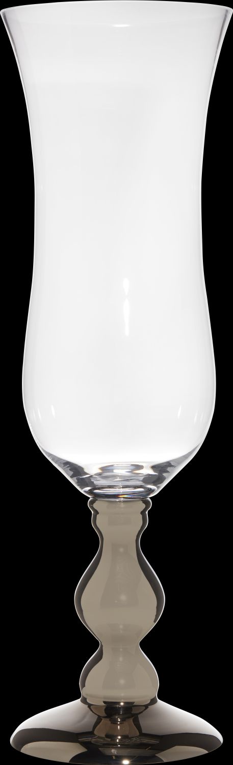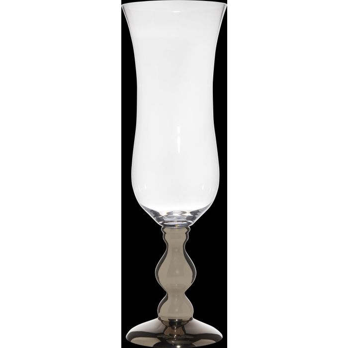 Jarrón grande de vidrio PIYA con forma de copa de champán, con pie, transparente-plata, 90cm, Ø29cm