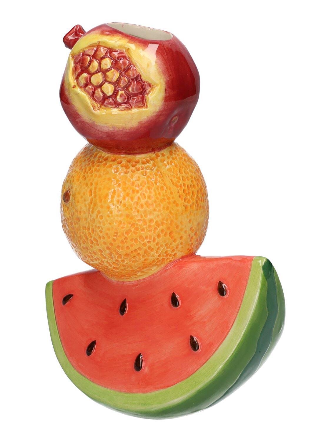 Jarrón individual para una flor granada naranja sandía TILLAS de cerámica, rojo-amarillo-verde, 14,8 x 8 x 21 cm