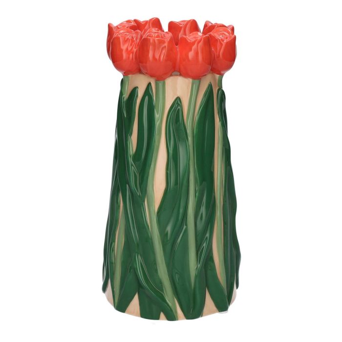 Jarrón LIMEA de dolomita, tulipanes en 3D, beige-rojo-verde, 24,5 cm, Ø 12,5 cm