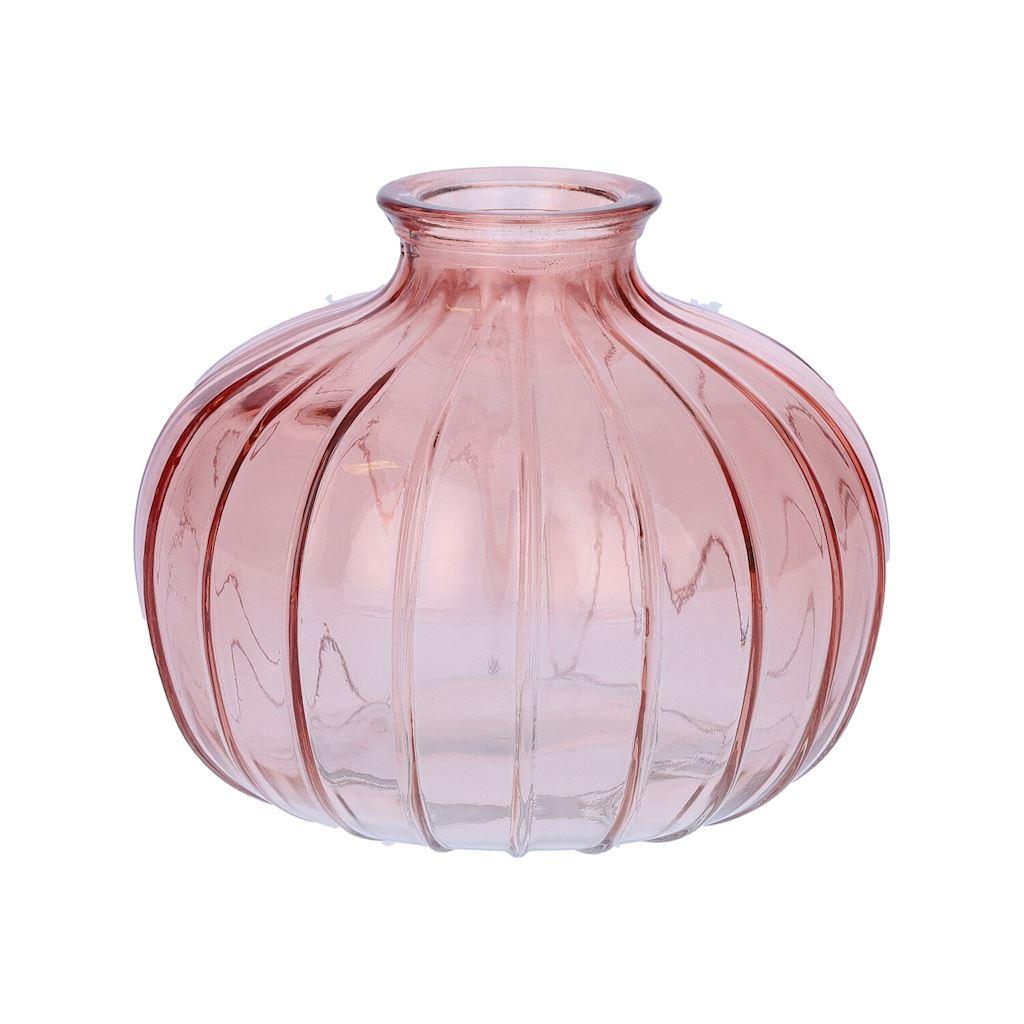 Jarrón para flores ALFHARD, vidrio con estrías, rosa viejo transparente, 8,5 cm, Ø 10,5 cm