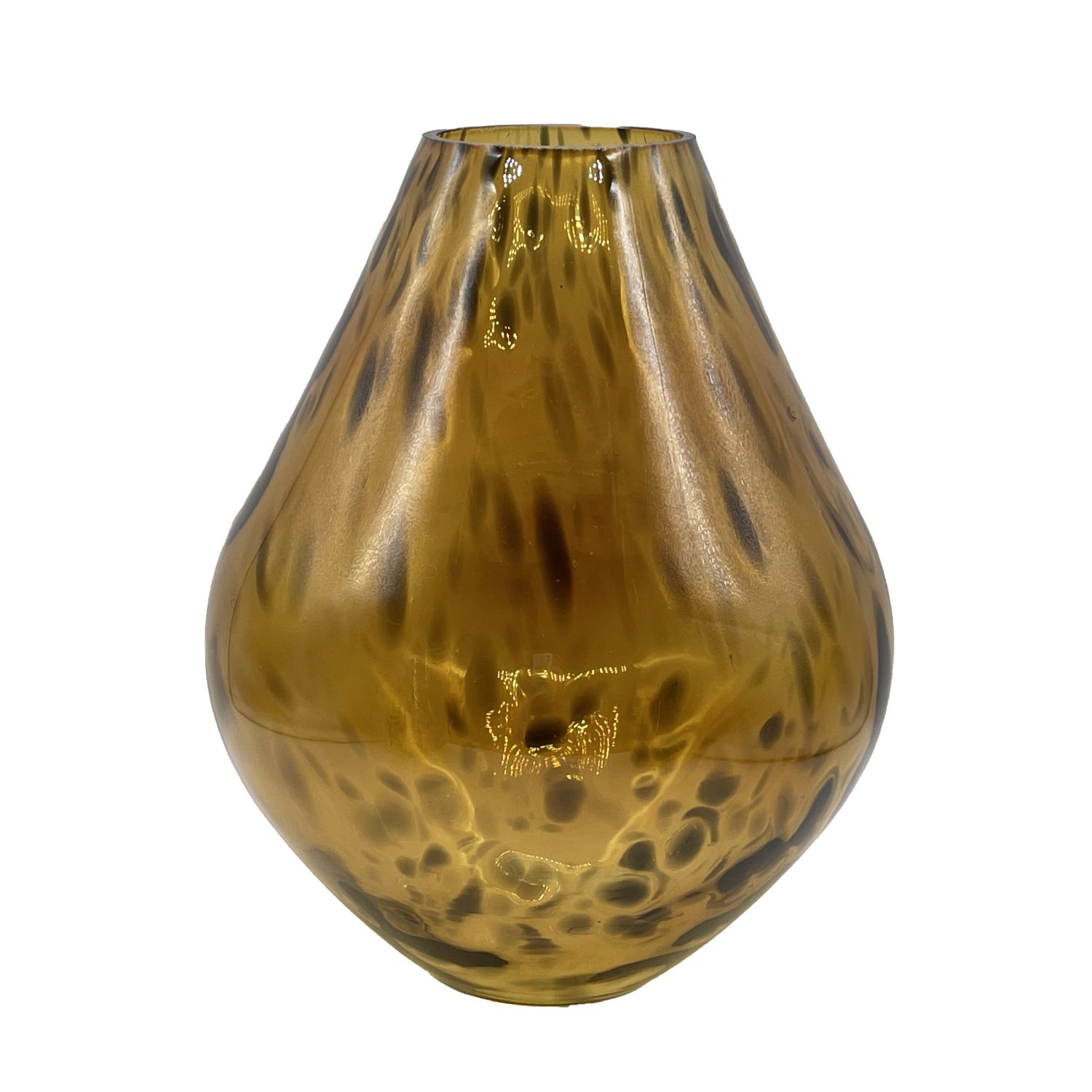 Jarrón para flores RUSSELL, vidrio, abombado, estampado de leopardo, marrón-transparente, 28 cm, Ø 23 cm