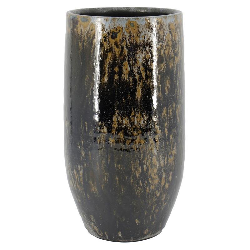 Jarrón para plantas ELIEL de cerámica, moteado, marrón-azul, 45 cm, Ø 20 cm
