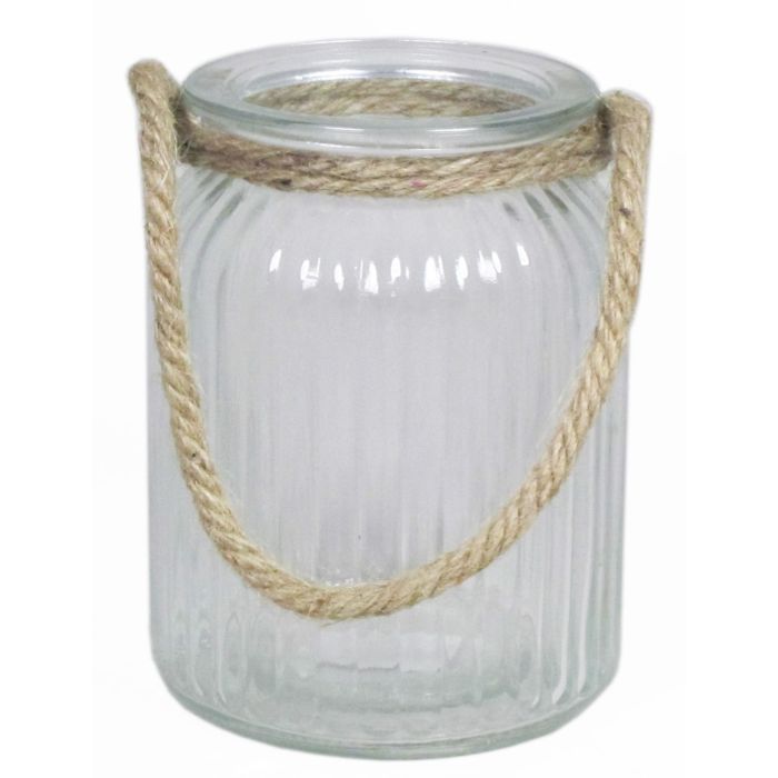 Jarrón para velas ADANNA con mango, líneas verticales, transparente, 14,5cm, Ø11cm