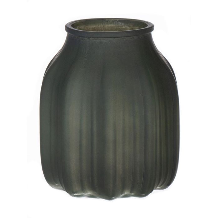 Jarrón pequeño de cristal AMORY, verde oliva mate, 16cm, Ø13,8cm