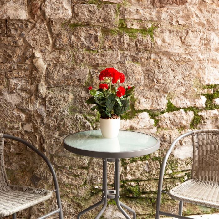 ¡Un color rojo vivo! Los geranios nunca pasan de moda. En verano, suelen alegrar las barandillas de los balcones con sus vivos colores. Nuestro geranio rojo fuego parece de verdad, así que hay que tener cuidado de no regarlo accidentalmente, porque los gránulos de plantación, que también sirven para plantas de verdad, son una auténtica invitación a hacerlo. Compra el look!