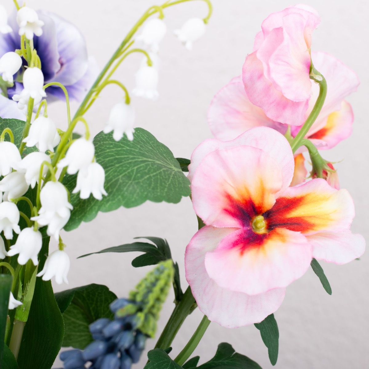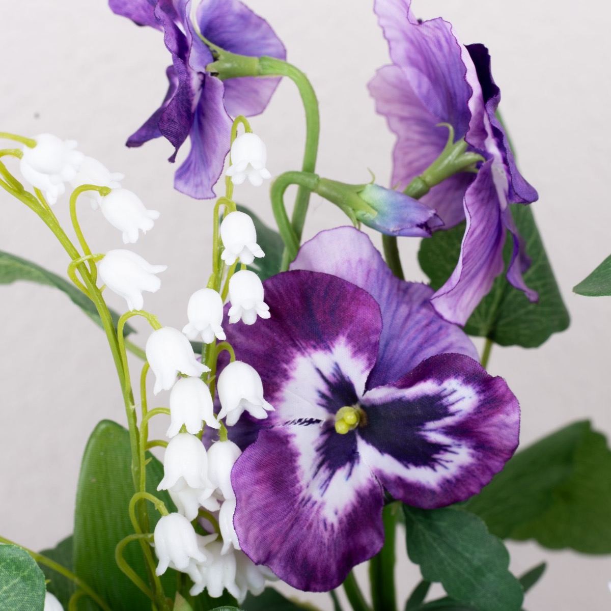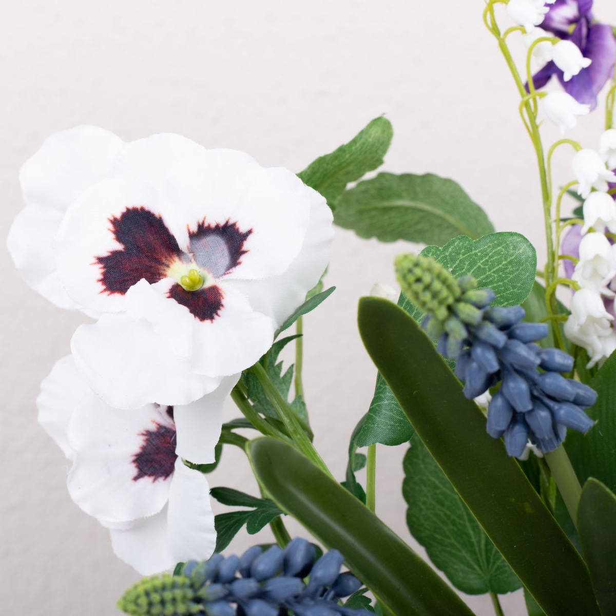 ¡Azul celeste con colores delicados! Las flores tempranas de colores refrescan cualquier lugar. Los jacintos azules brillan entre las campanillas y los pensamientos y realzan el musgo natural de color azul brillante. Un anillo decorativo flocado con un colgante. En este look lo usamos como adorno adicional para el arreglo al colocarle 3 jacintos. ¡Una gran sorpresa de cumpleaños! ¡Compra el look!